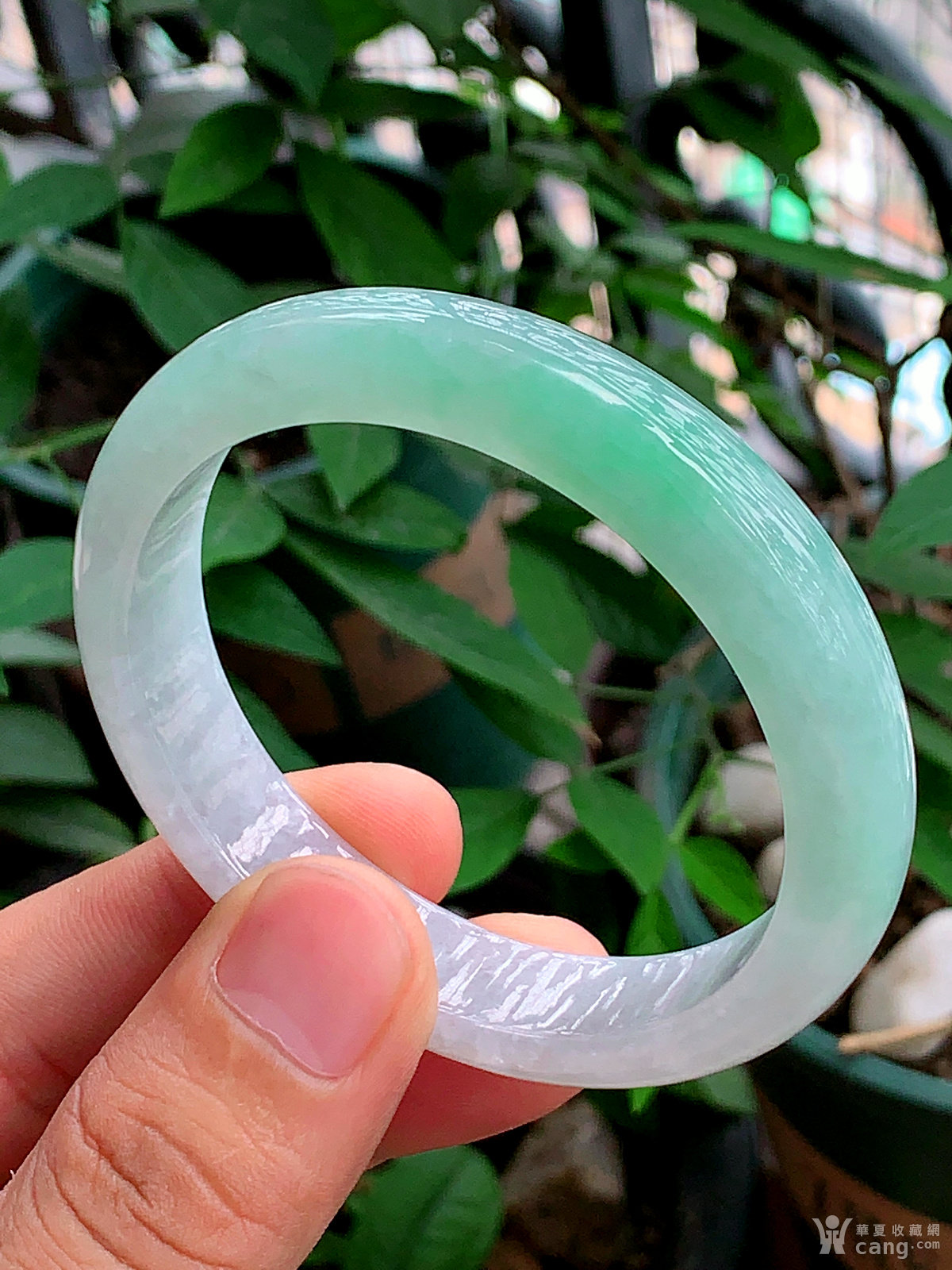 缅甸天然翡翠A货冰透水润飘花宽边手镯57.8圈口