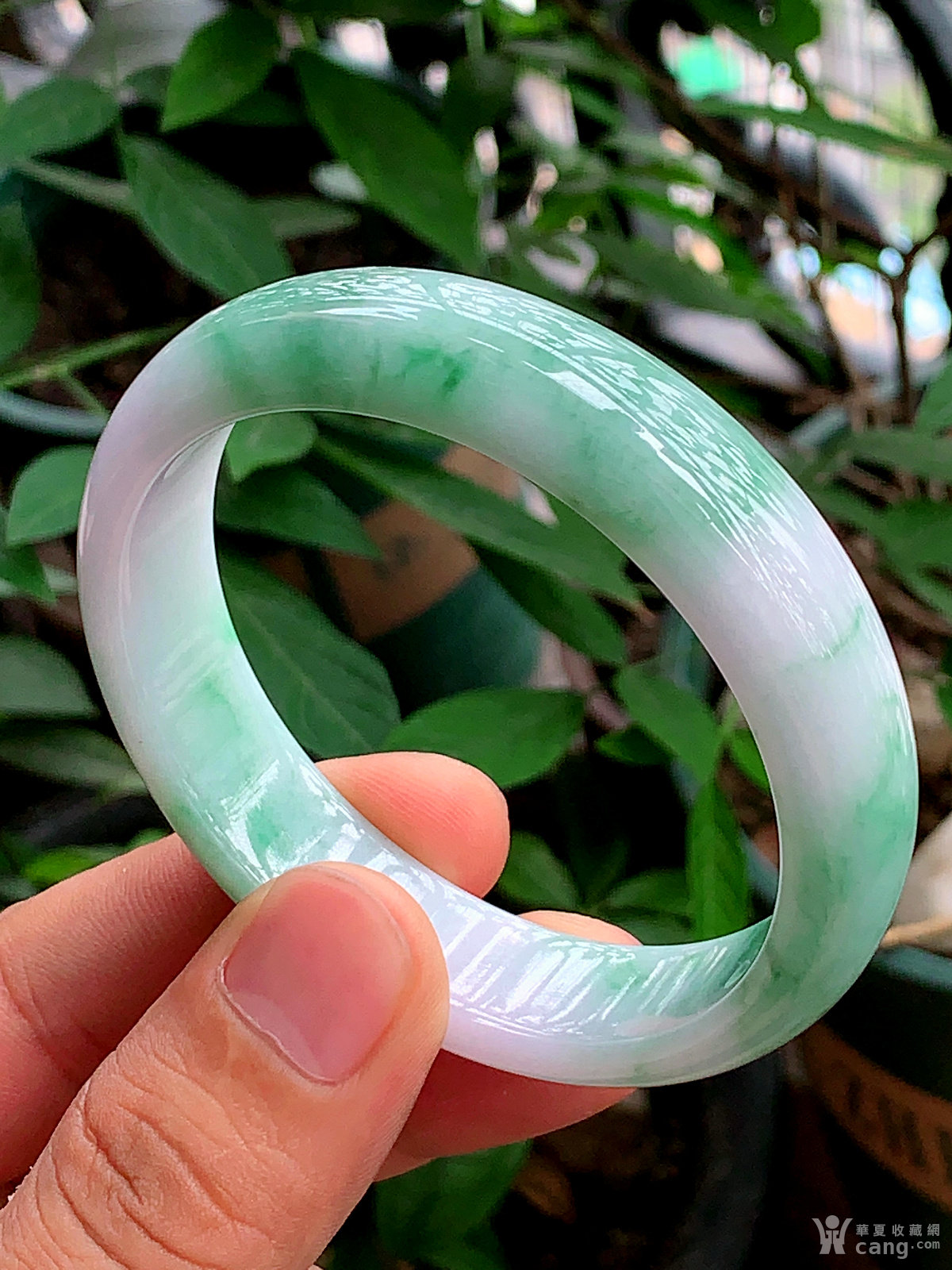 缅甸天然翡翠A货水润飘花宽边手镯59圈口