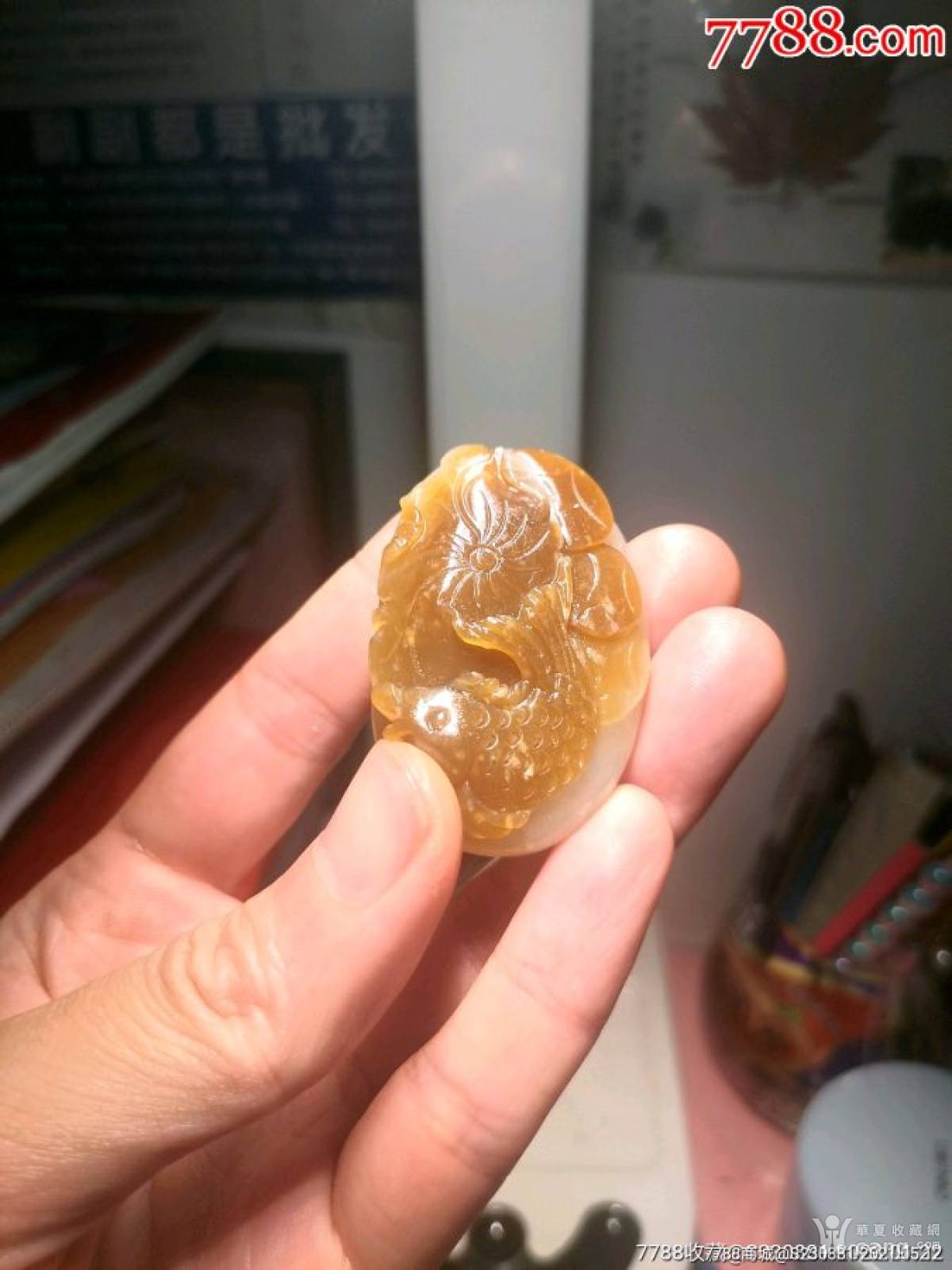 和田玉糖料莲年有鱼吊坠