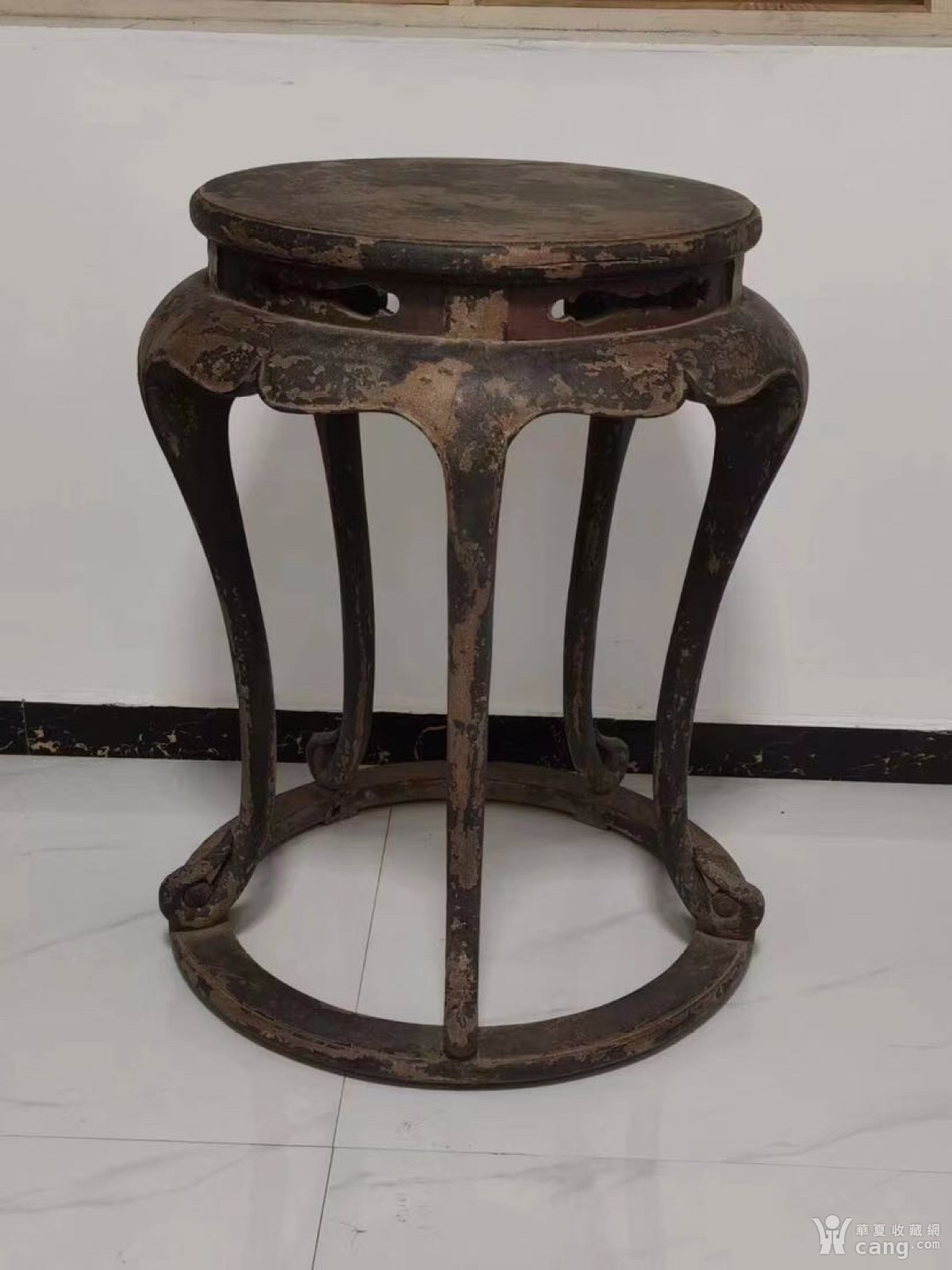 三湾腿五足香几 木质榆木大漆 尺寸高83面直径55厘米