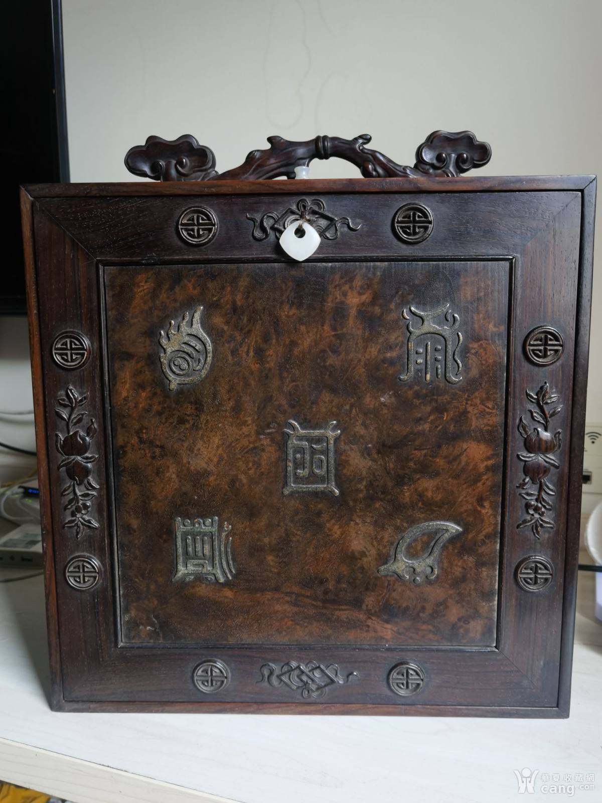 清中期黄花梨樱面百寿纹手提箱,高不连提手高36.8,宽也是3