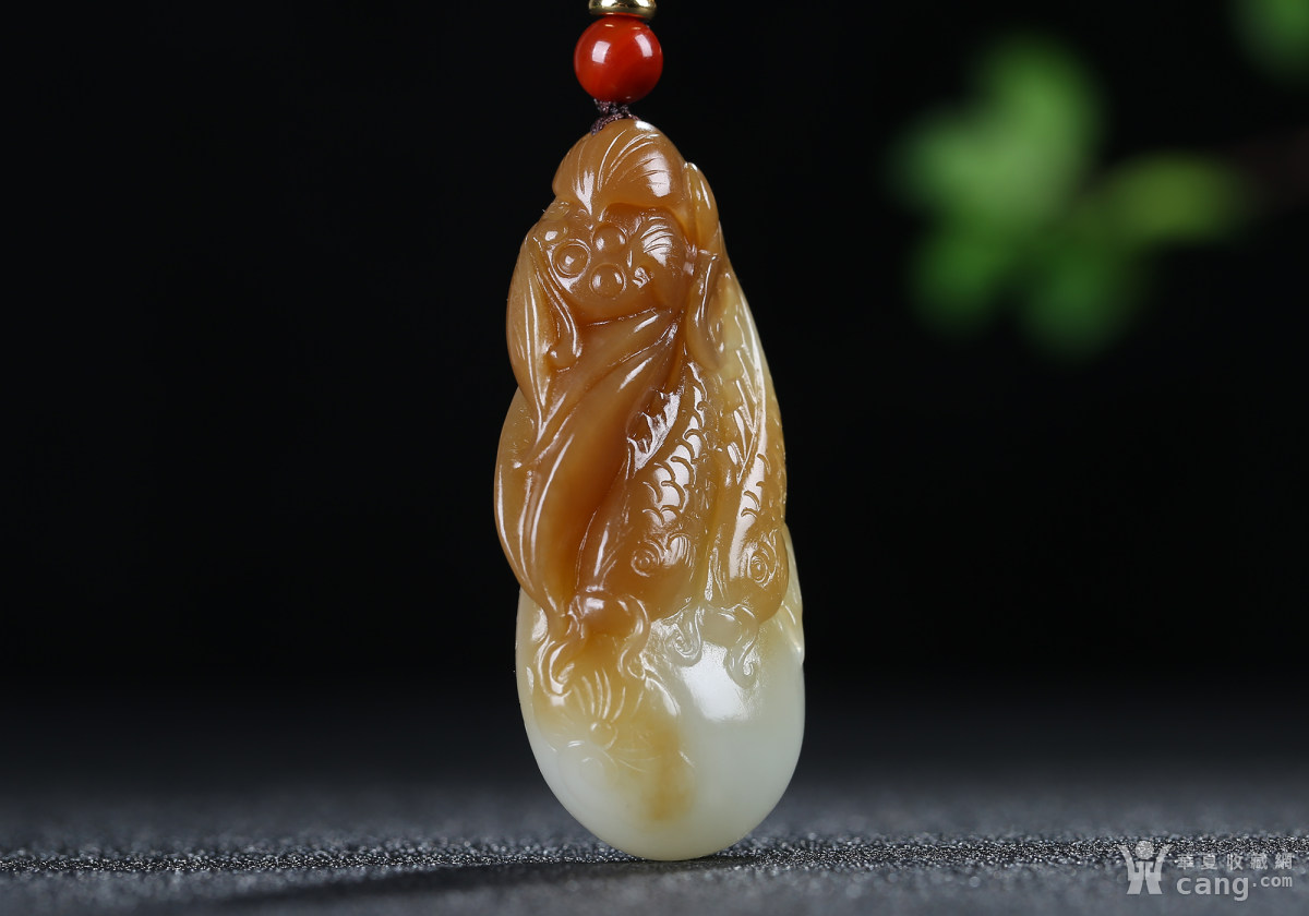 [糖羊脂白玉]天然玉石和田玉连年有余莲花鱼挂件24.50g