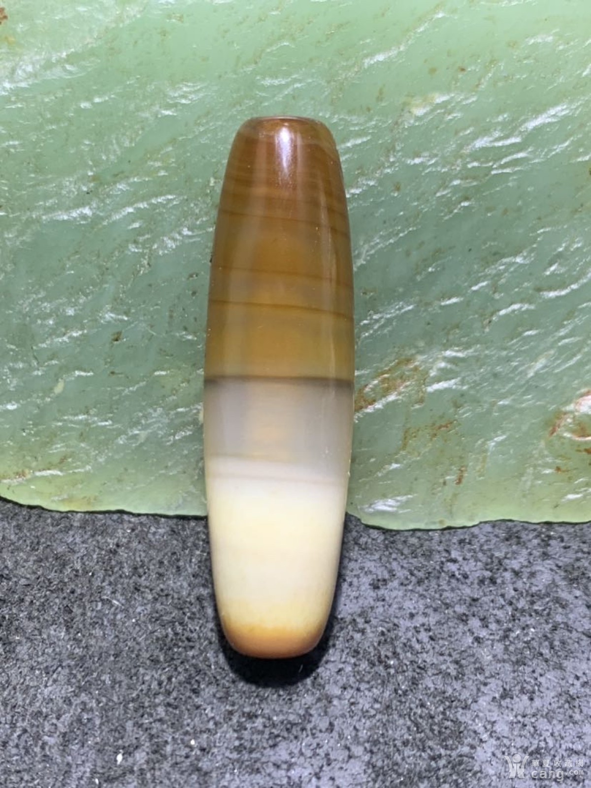 精美高玉化咖色缠丝玛瑙桶珠一颗,