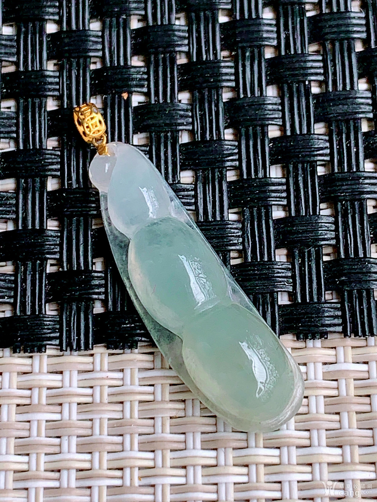 缅甸天然翡翠A货18k金扣冰透水润四季豆吊坠