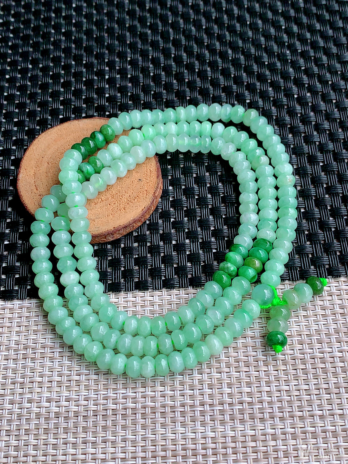 缅甸天然翡翠A货冰润满绿算盘珠项链