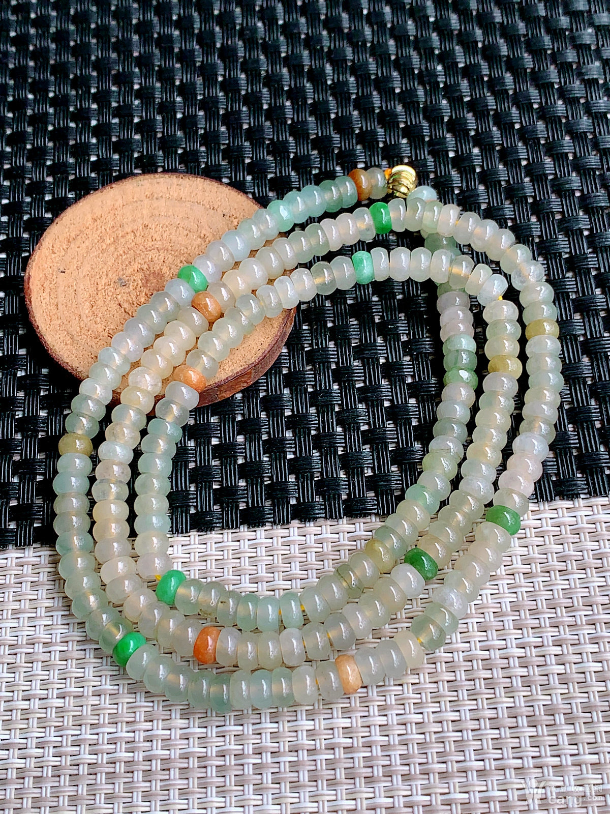 缅甸天然翡翠A货冰透水润多彩算盘珠项链