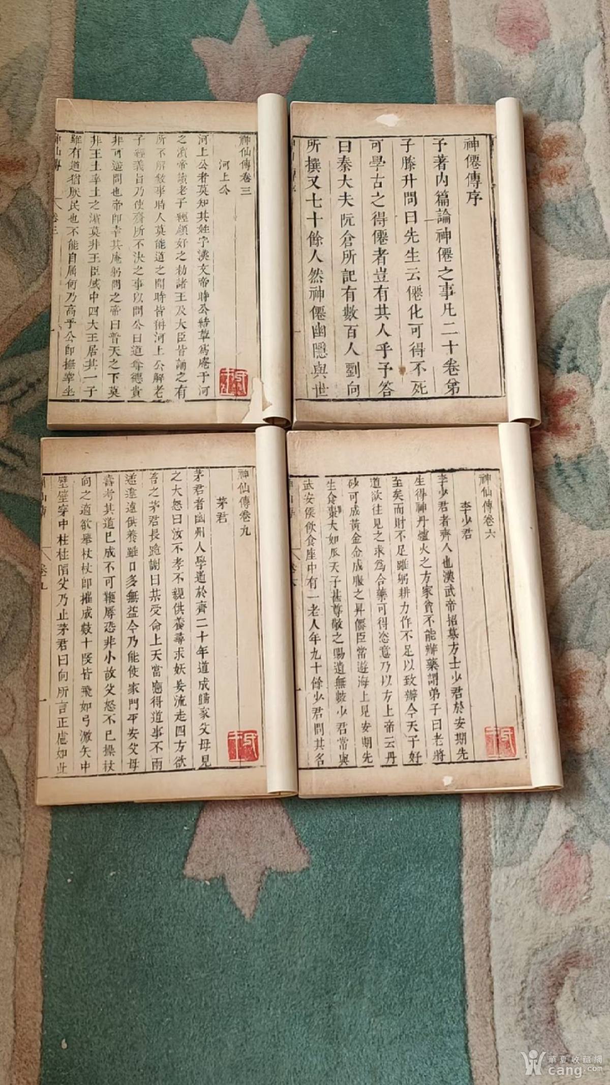 730号,明末清初精刻【神仙传】4厚册10卷一套全、尺寸24