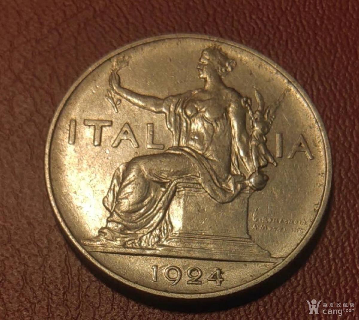 意大利上世纪20年代早期镍币 1924年1里拉镍币 非银币
