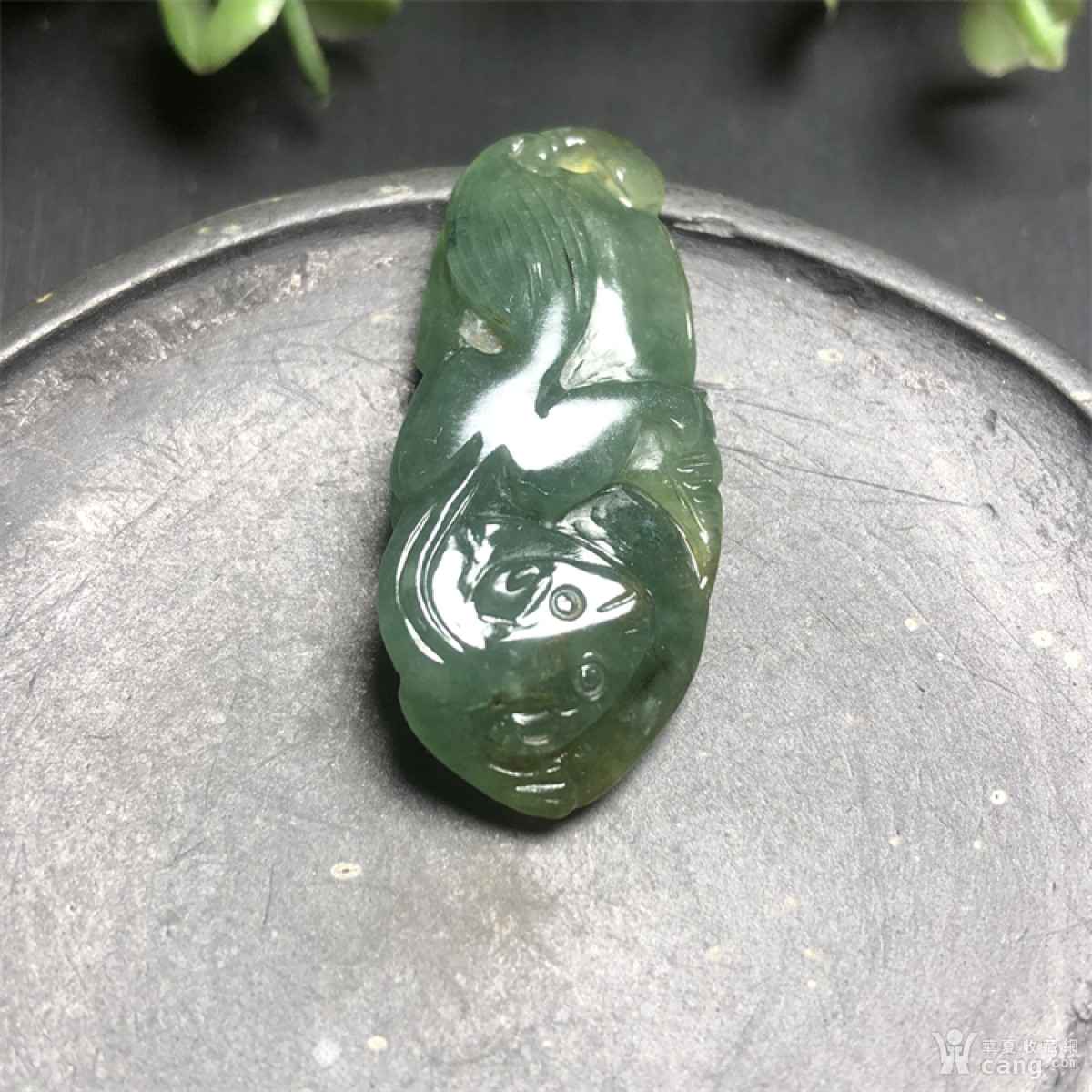 F205创汇期冰油青种巧雕“寿桃如意欢“吊坠