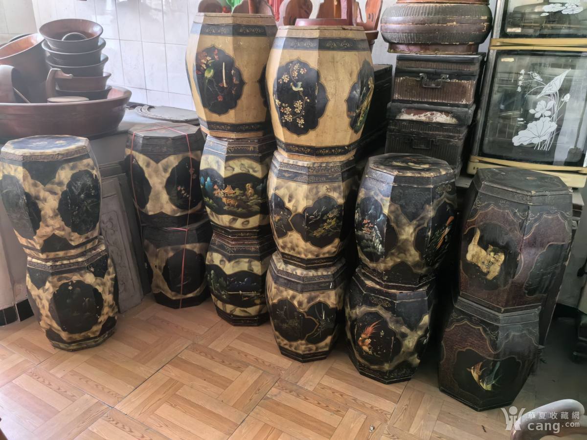 民俗老物件老式人物图花鼓桶鼓凳坐凳收纳古墩老式花架 雨伞桶
