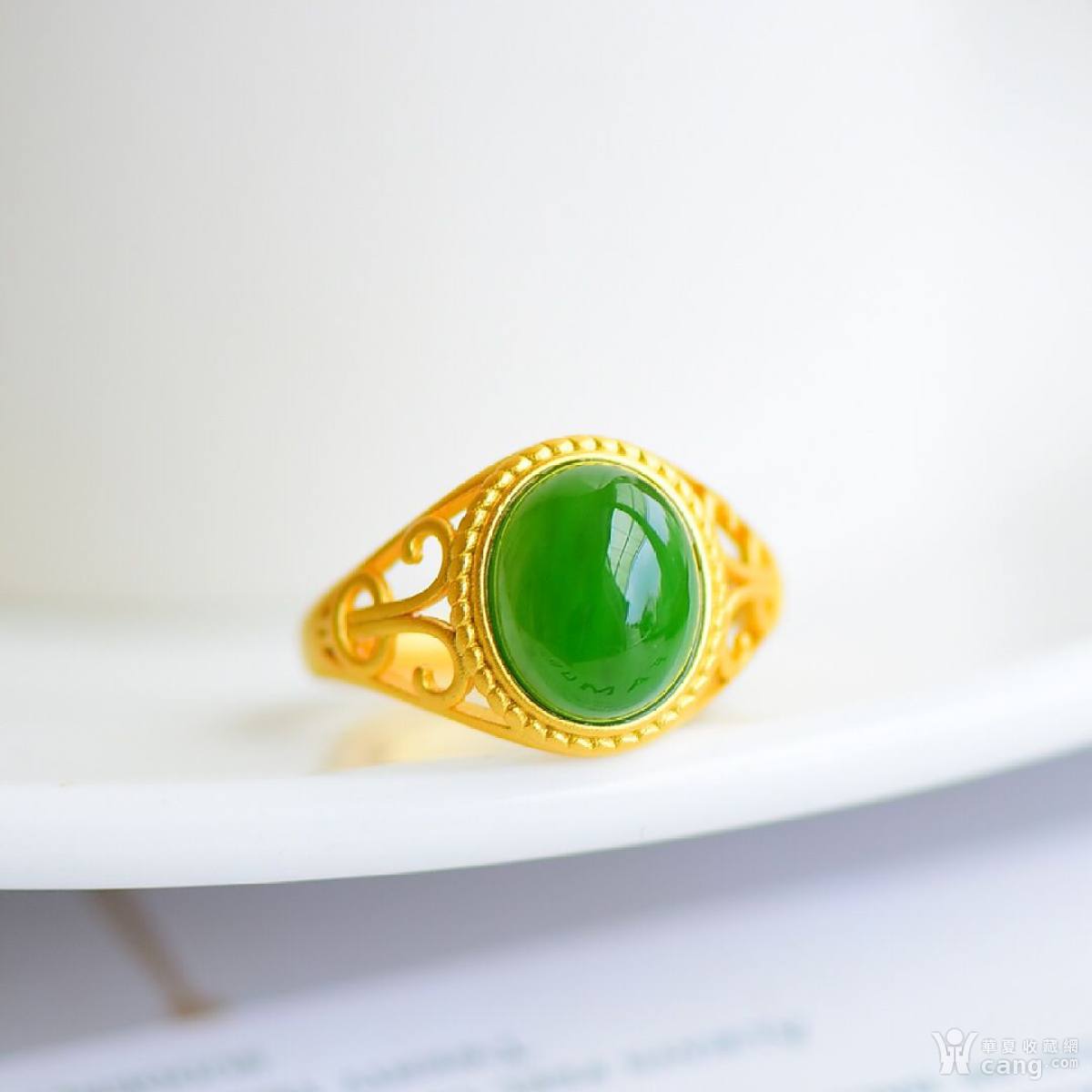 银镶和田玉碧玉戒指