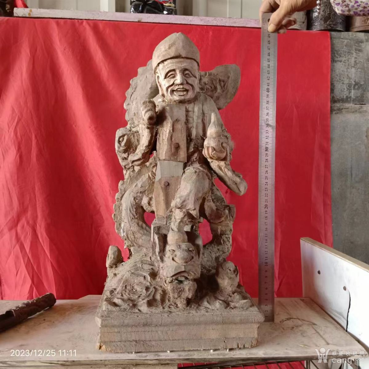 有拼接,重11斤,高50长25宽23厘米,樟木大木雕骑龙济公