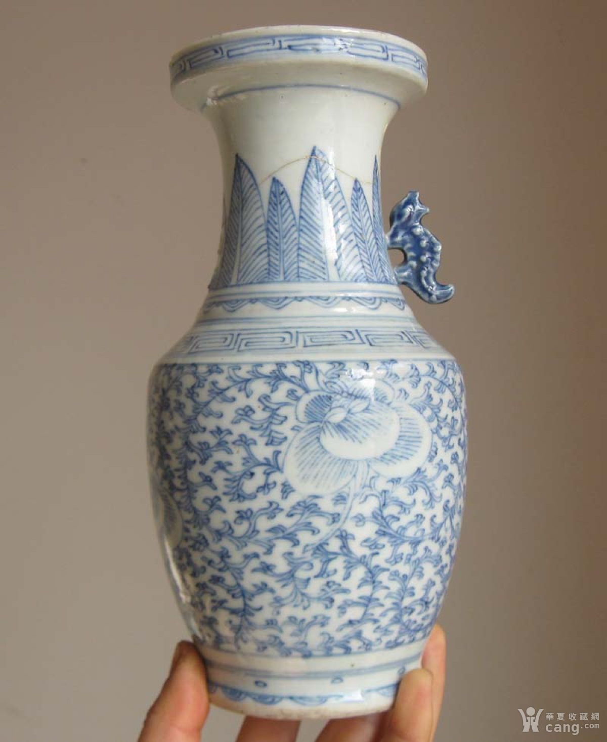 青花小花瓶,口到脖有环绕裂,少只耳,肚完好