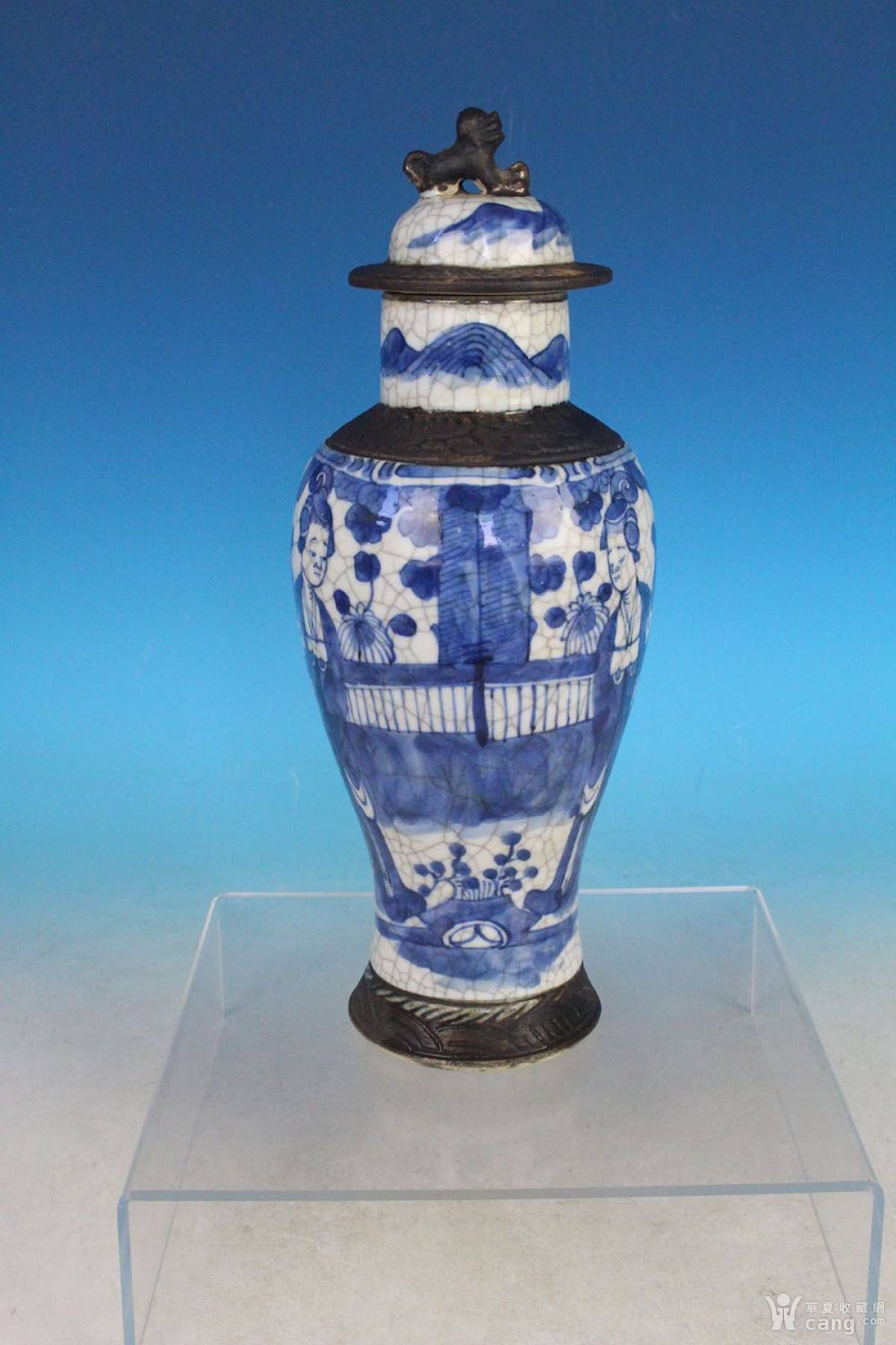 清晚期通景哥釉侍女庭院人物故事盖瓶
