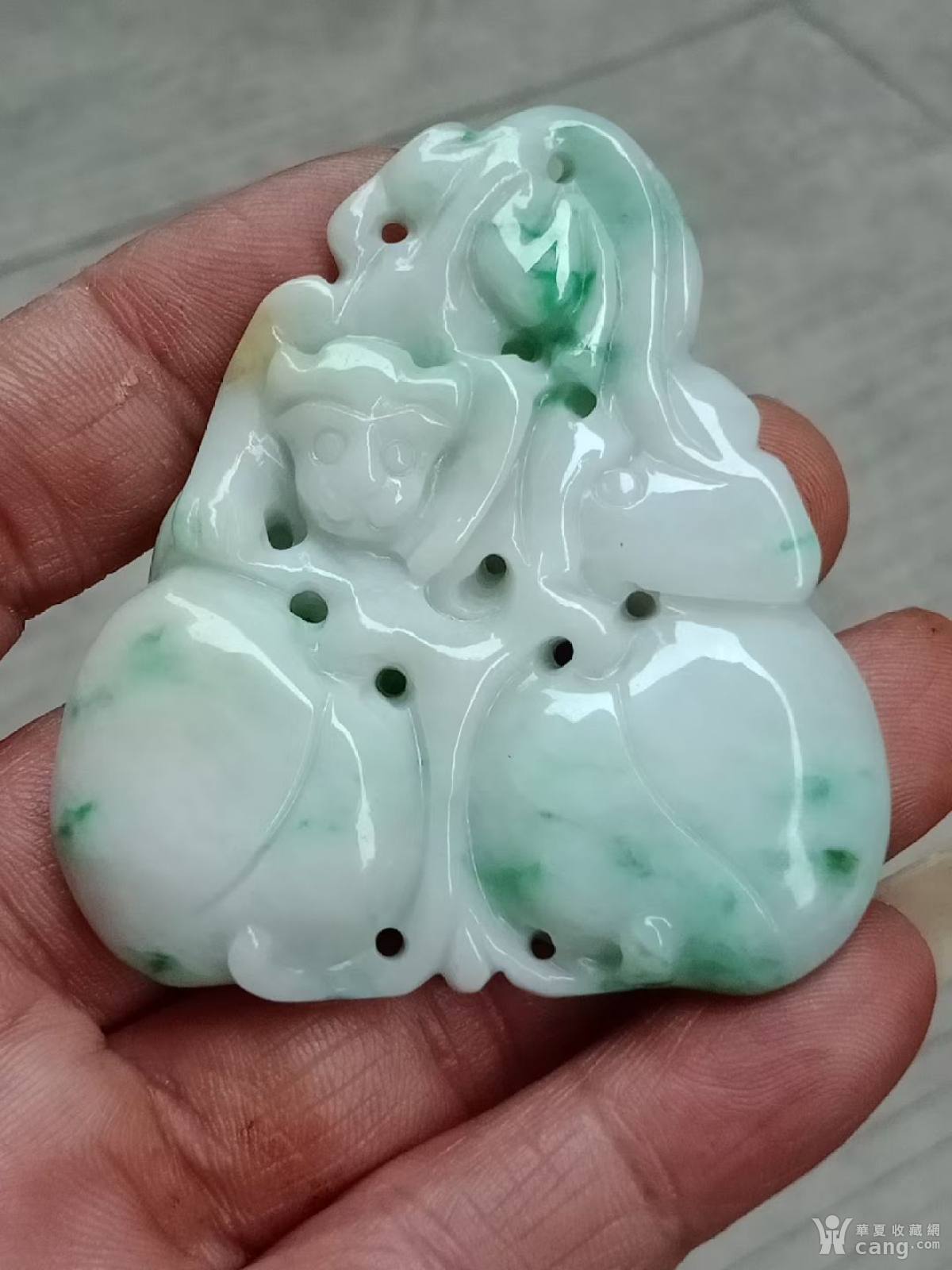 864117-2A翡翠阳绿灵猴献寿挂件(送证书)