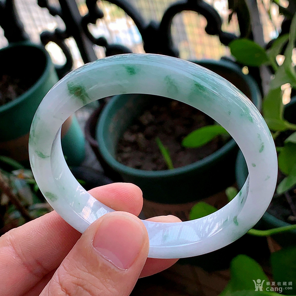 缅甸天然翡翠A货冰润飘绿大圈口宽边手镯61圈口