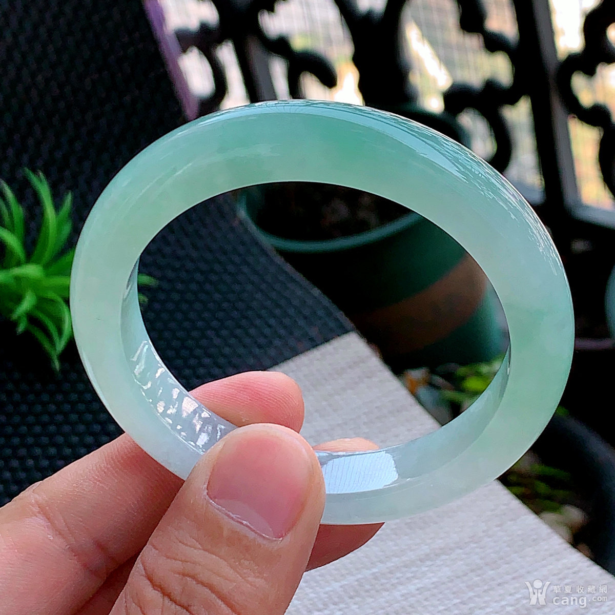 缅甸天然翡翠A货冰透水润飘绿宽边手镯58.8圈口