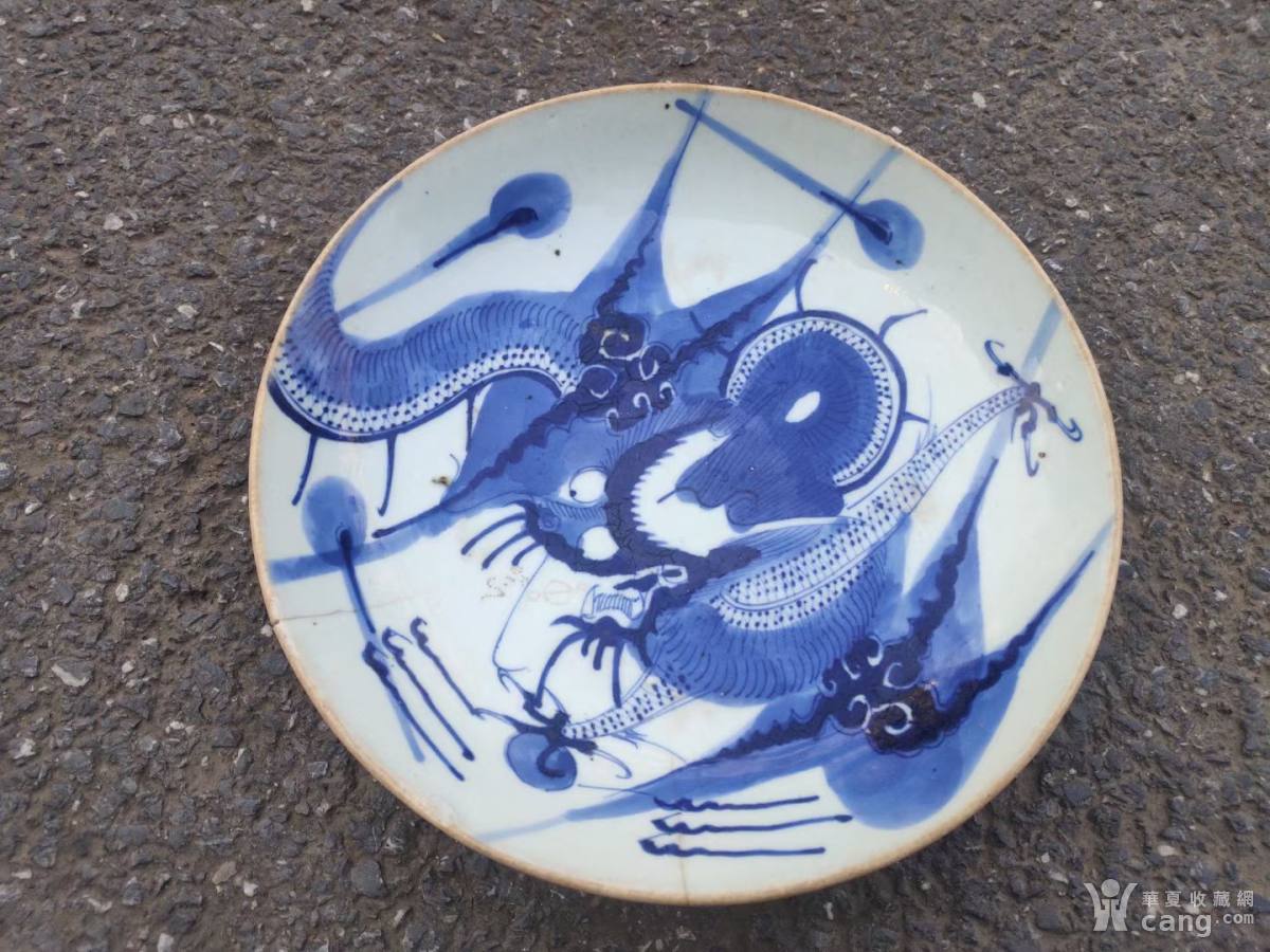清三代乾隆青花过墙龙大盘