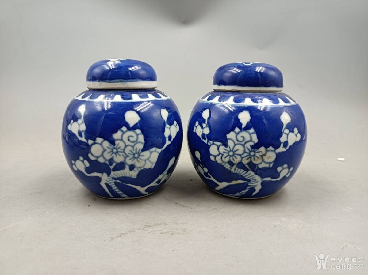 建国初景德镇窑青花冰梅罐一对