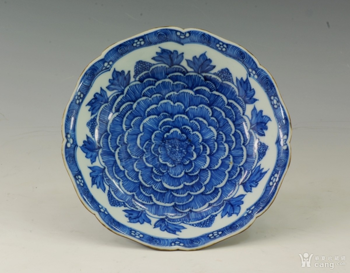 康熙仿明青花牡丹纹花口碗
