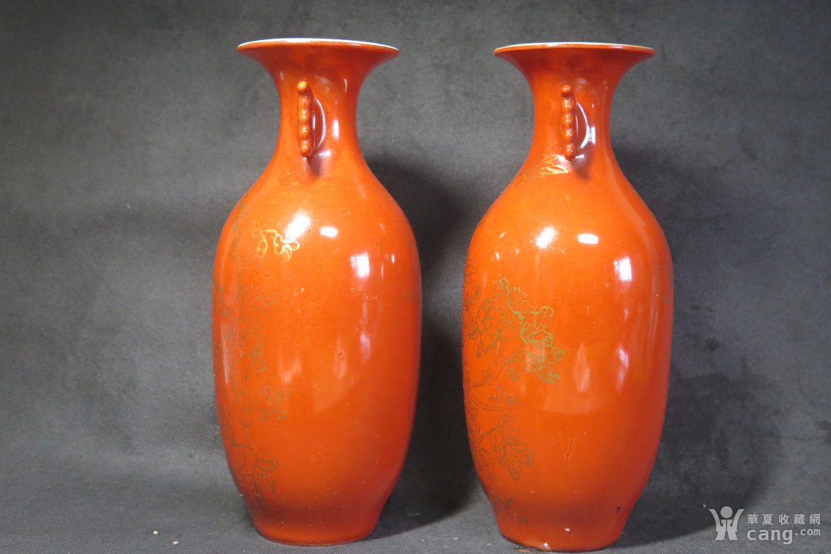 民国子孙万代描金钒红对瓶一对
