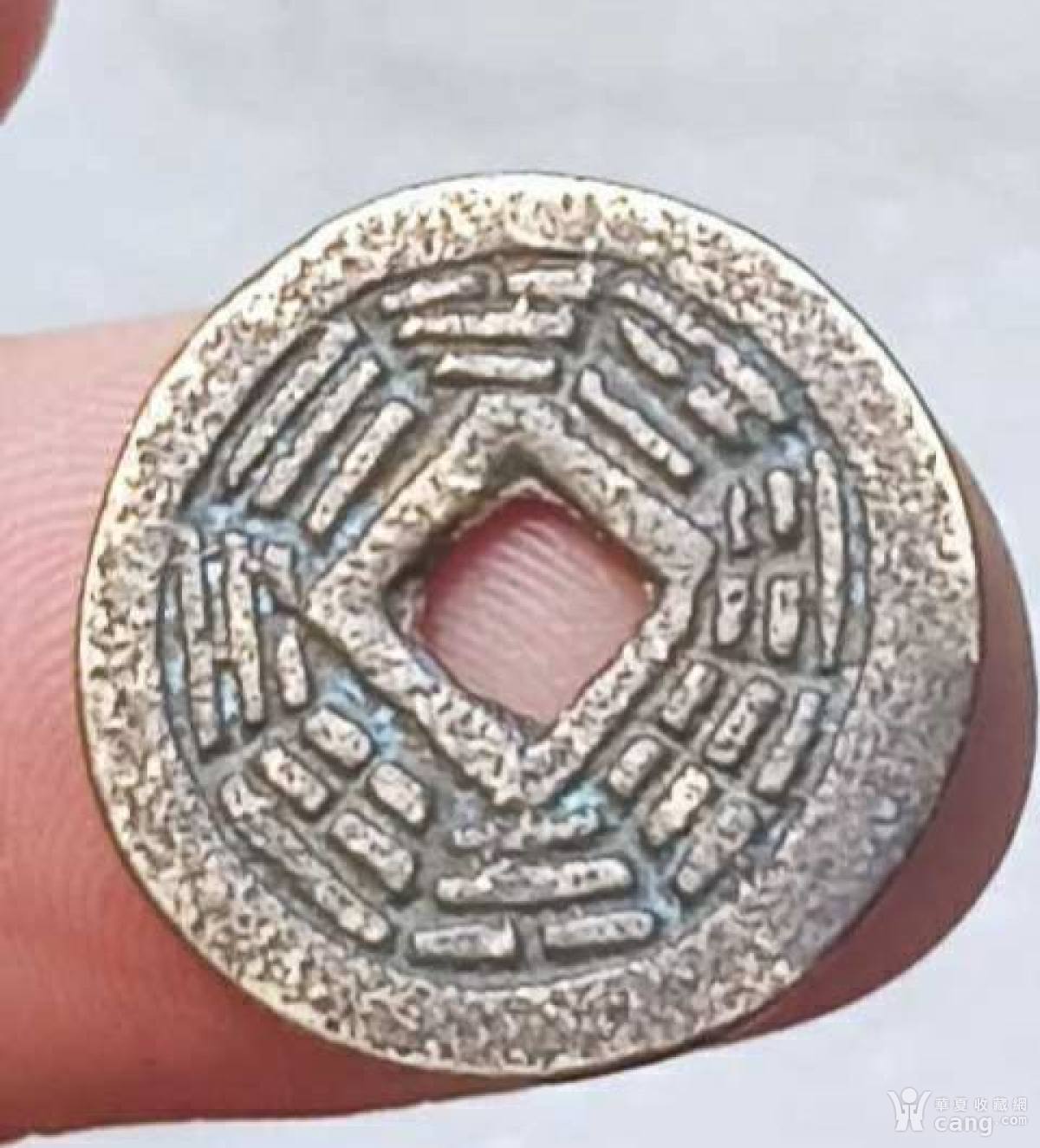 镇宅平安八卦小花钱一枚,铜的,少见品种,实物拍摄如图,黄亮好