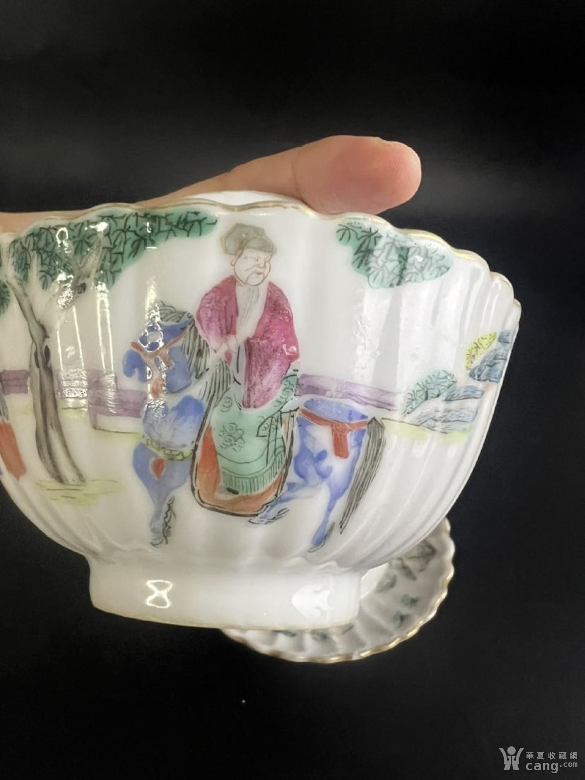 清同治粉彩细路瓜棱三件套人物故事盖碗,超精品,细路
