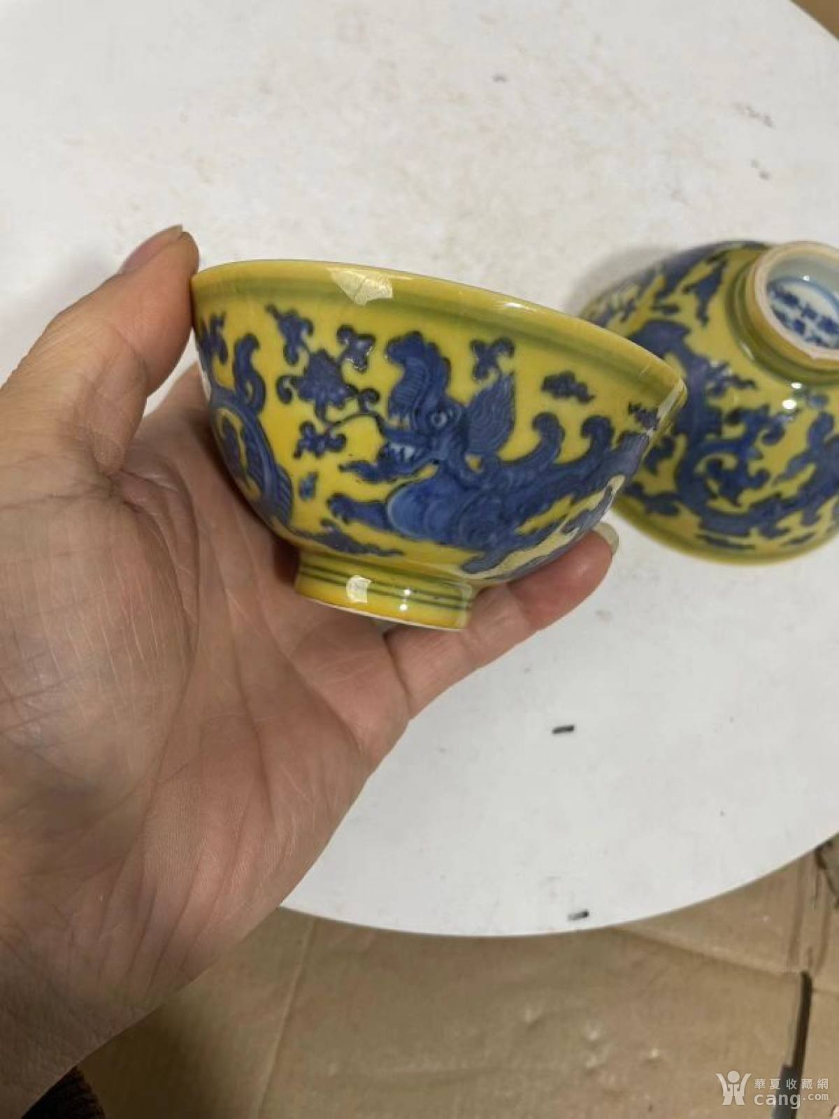 精品黄釉杯子一对