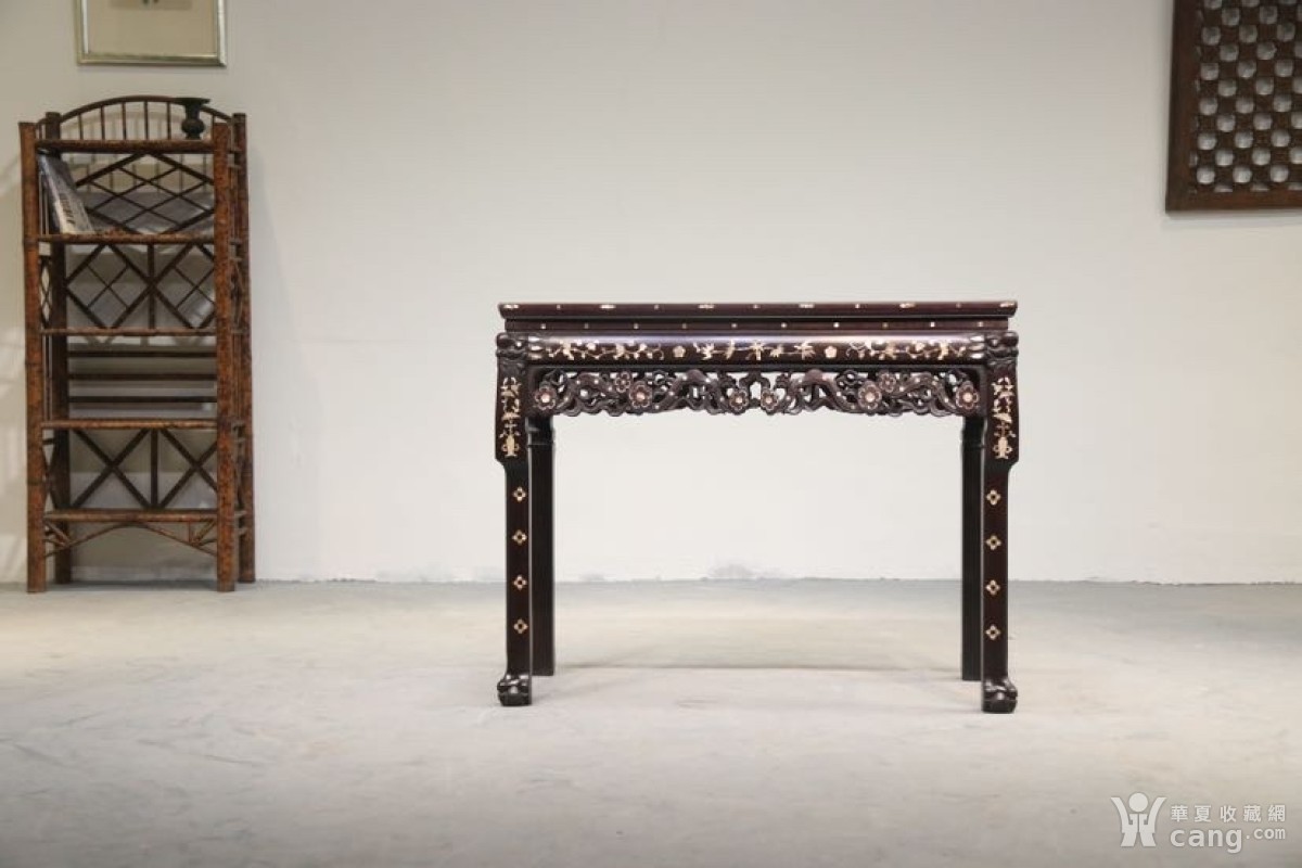 贵气、高端,红木 嵌螺钿石头面供桌; 做工精美 奢华,满嵌螺