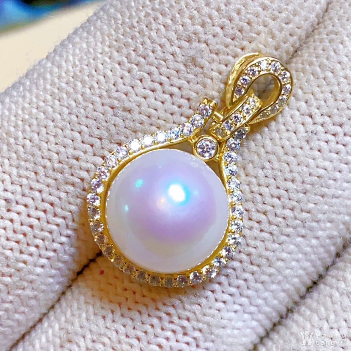 B919强光正圆极微瑕天然淡水珍珠粉虹光白珍珠纯银镀黄金吊坠