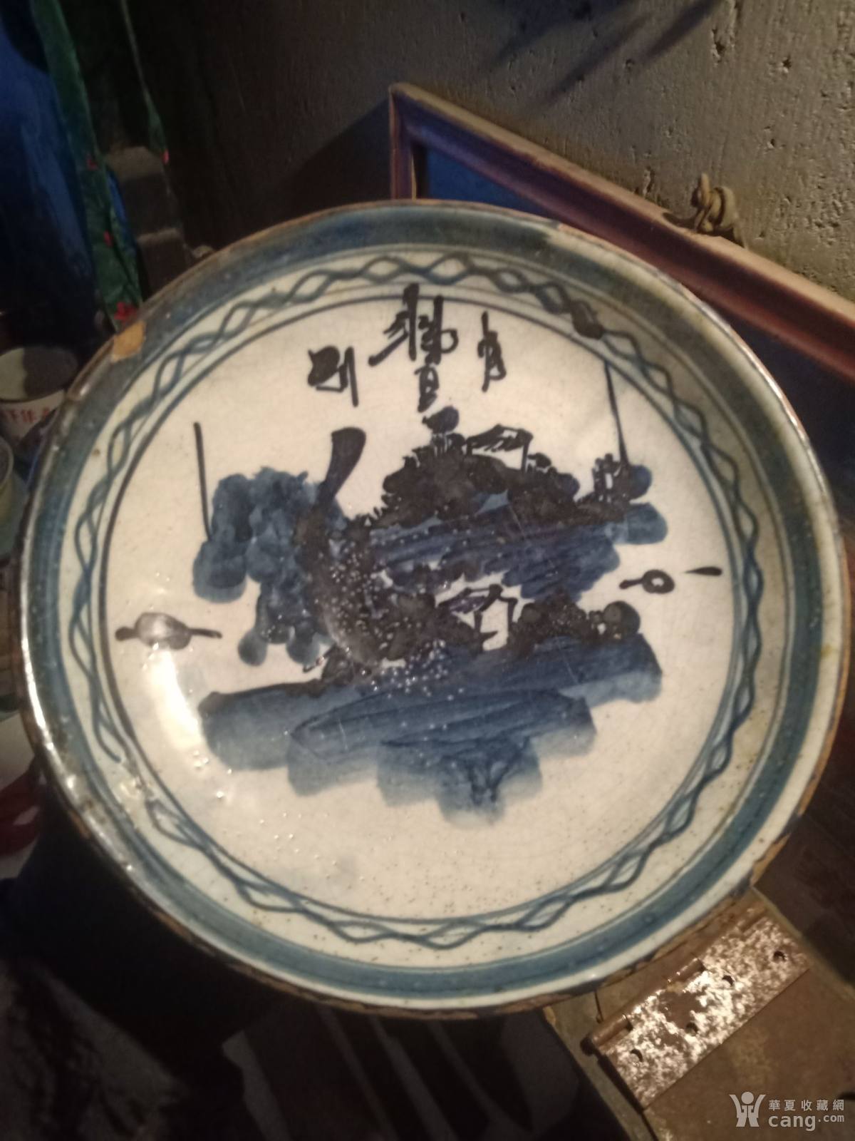 明清时期老窑风景铭文大盘一个
