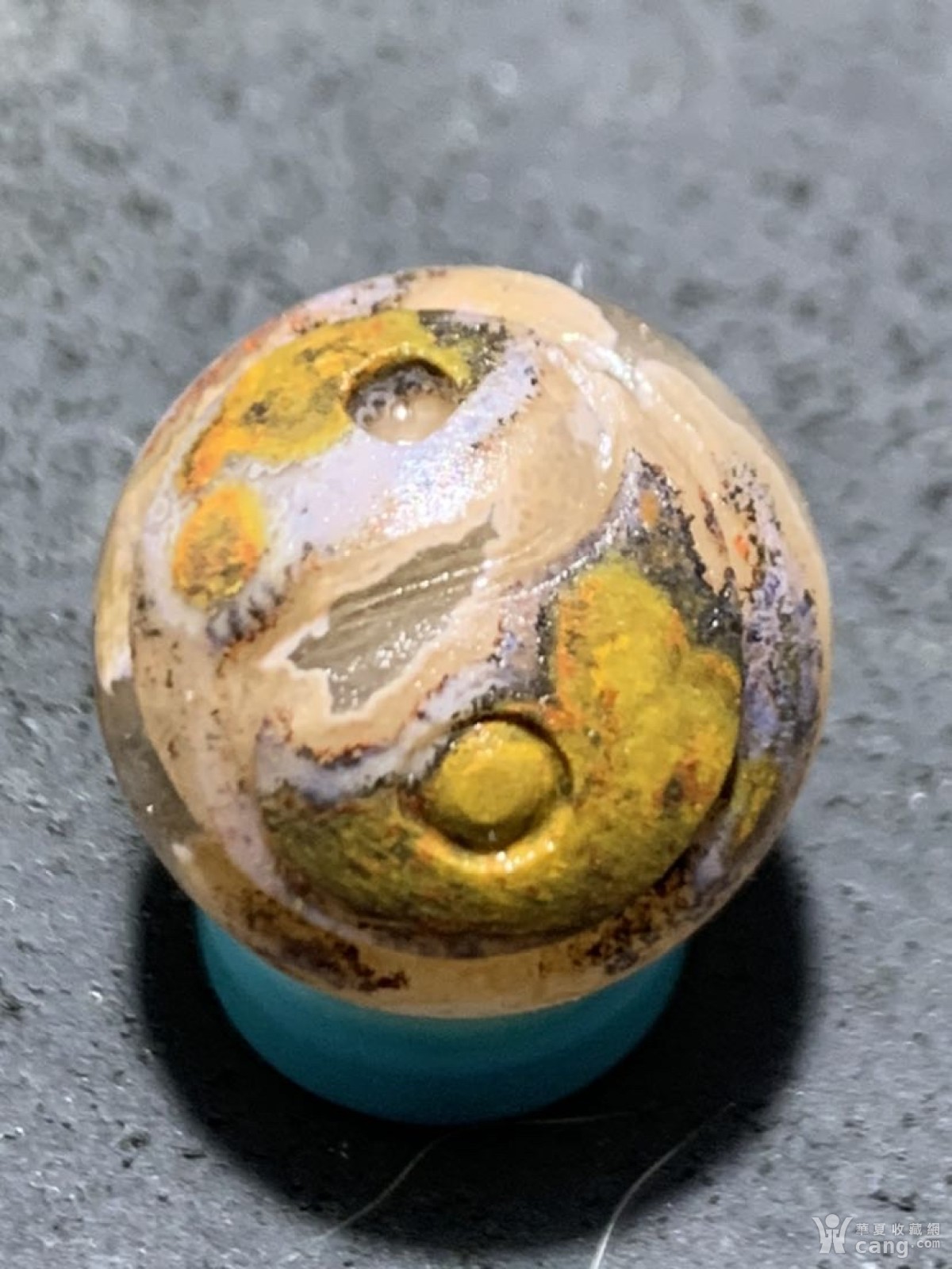 精美亚光冰飘料战国红玛瑙手工俏色巧雕太极珠一颗!