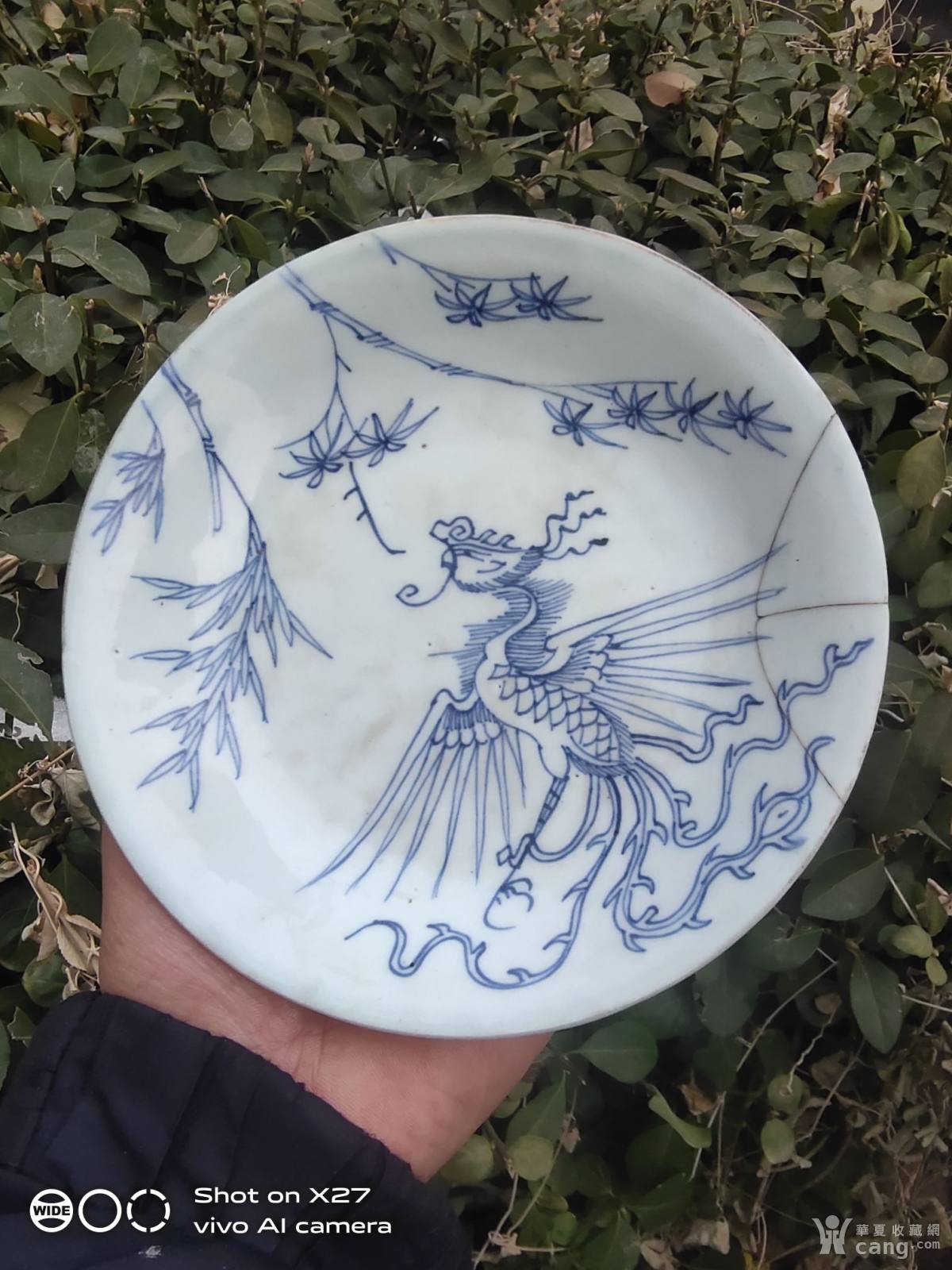 清代.青花:竹叶凤鸟盘