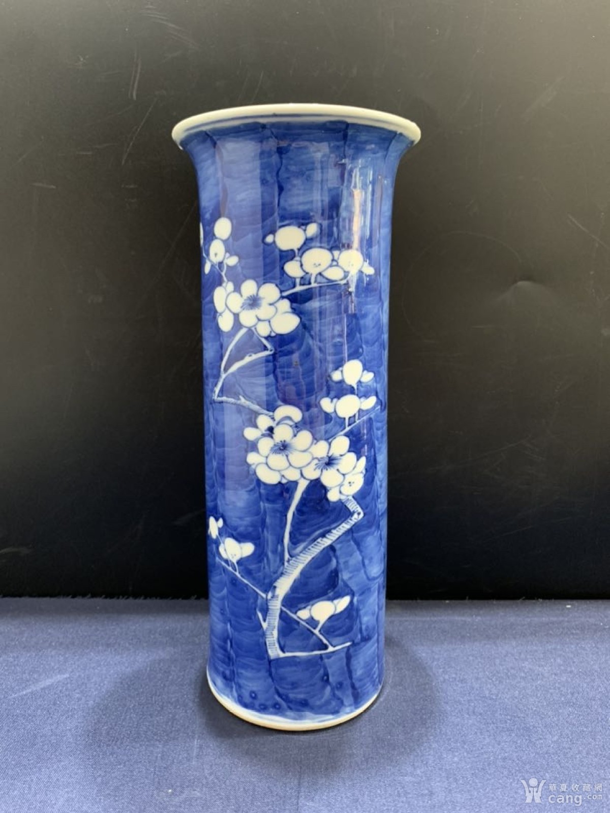清晚期青花留白冰梅筒瓶