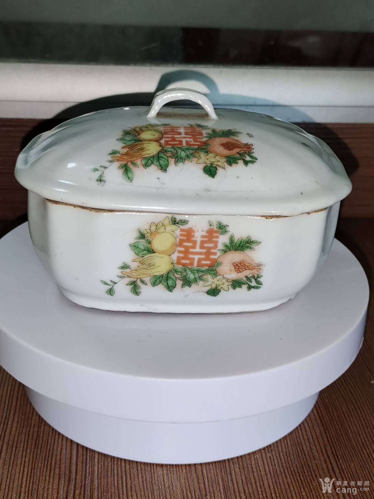 民国末解放初红双喜石榴图瓷盒!大开门的真品老货!是喜庆用品!