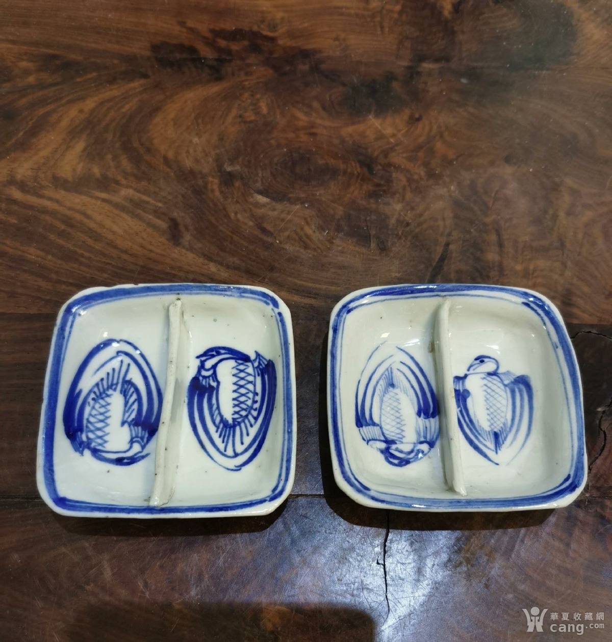 清晚期团鹤双格文房四方洗一对。文房精品,