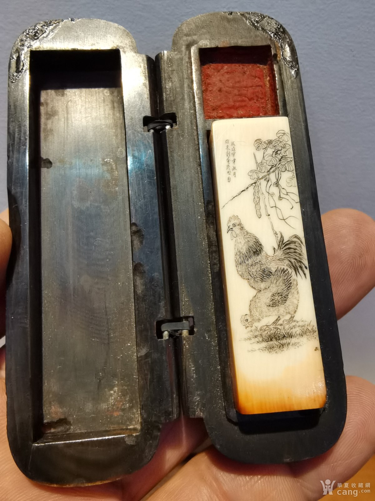 文房雅玩.清代篆刻微雕雄鸡图老印章...刻工精美.