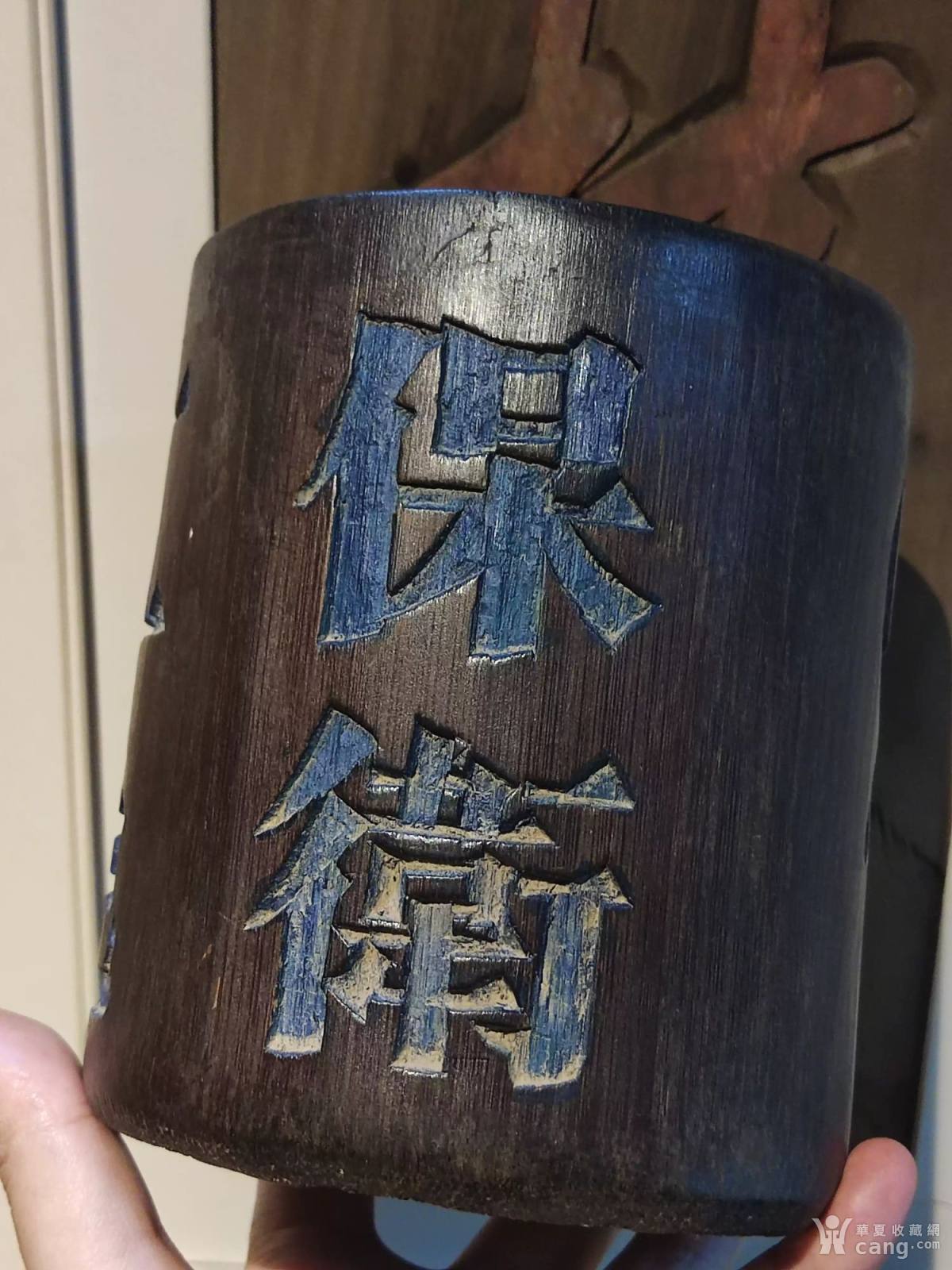 红色收藏文字题材竹刻笔筒