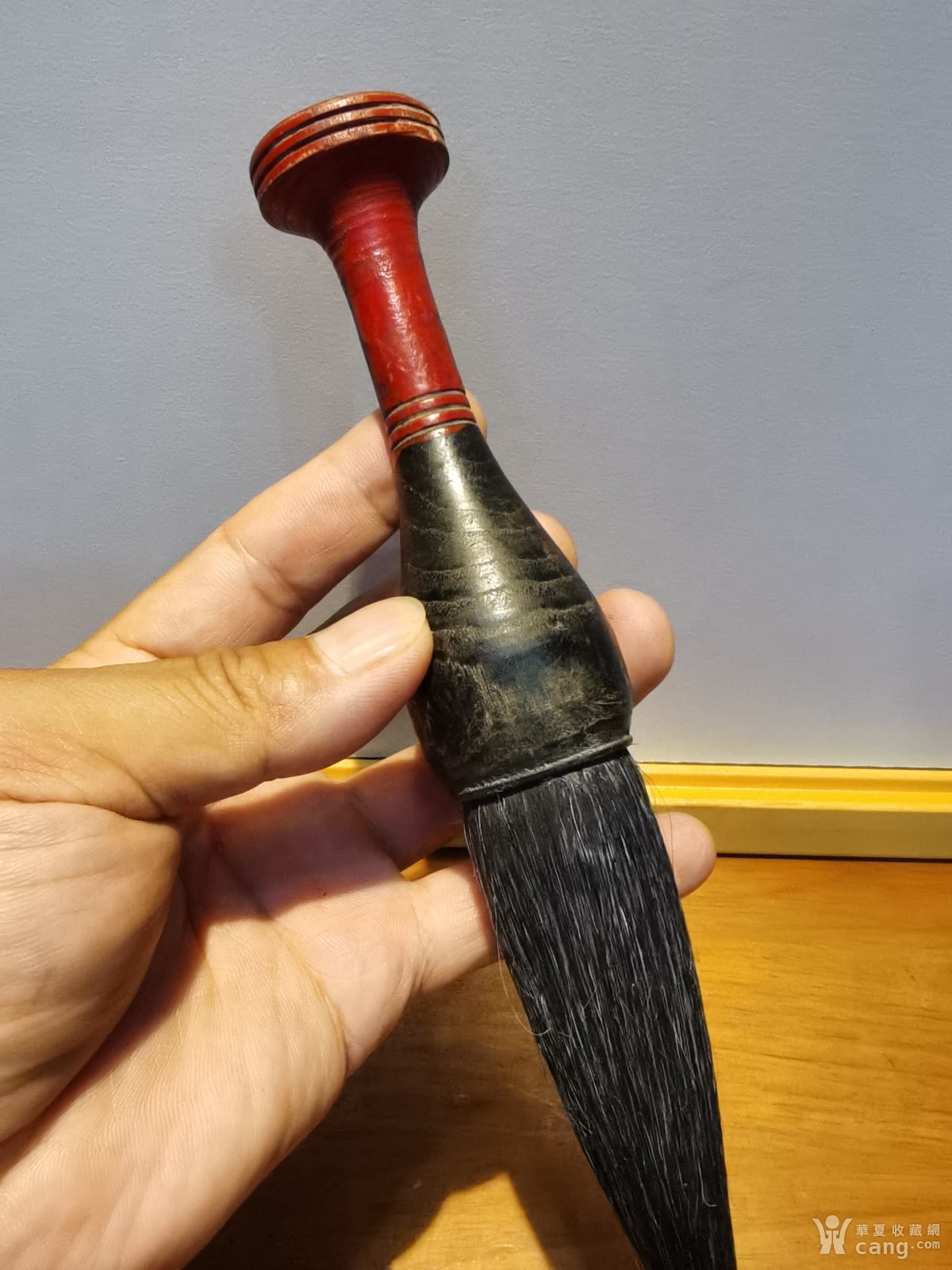 清代胡公寿红木毫笔.上半节上了红漆.毛笔顶端.可以打印