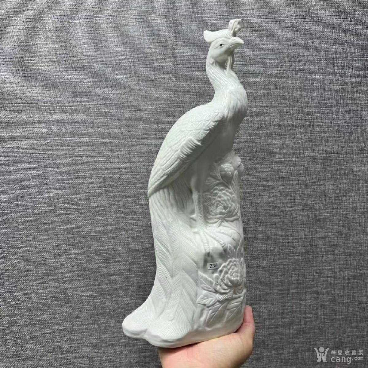 民国福建会馆款白釉孔雀瓷塑