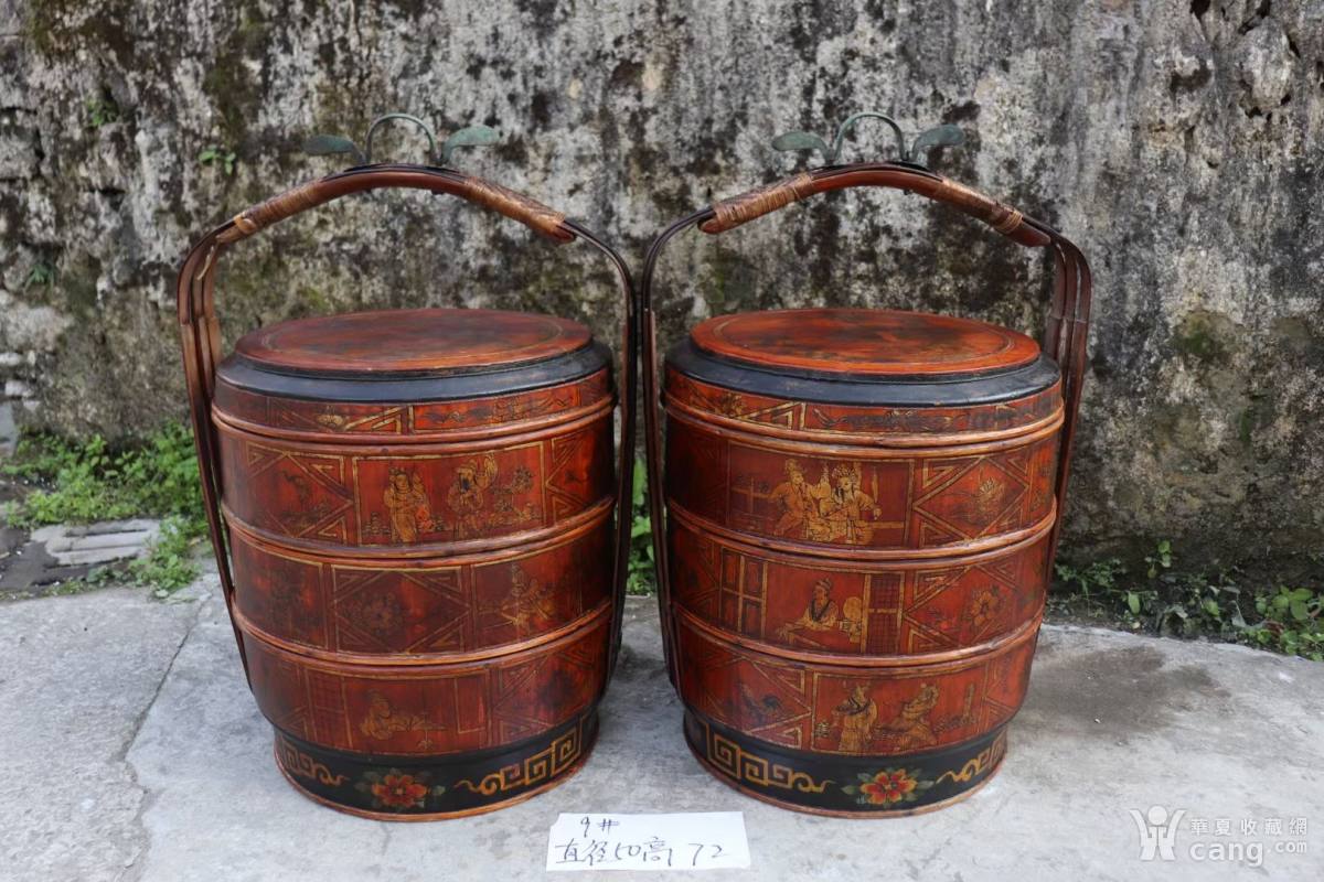 民俗老物件怀旧老家具,老木手绘特大尺寸提篮食盒一对,手提蓝,