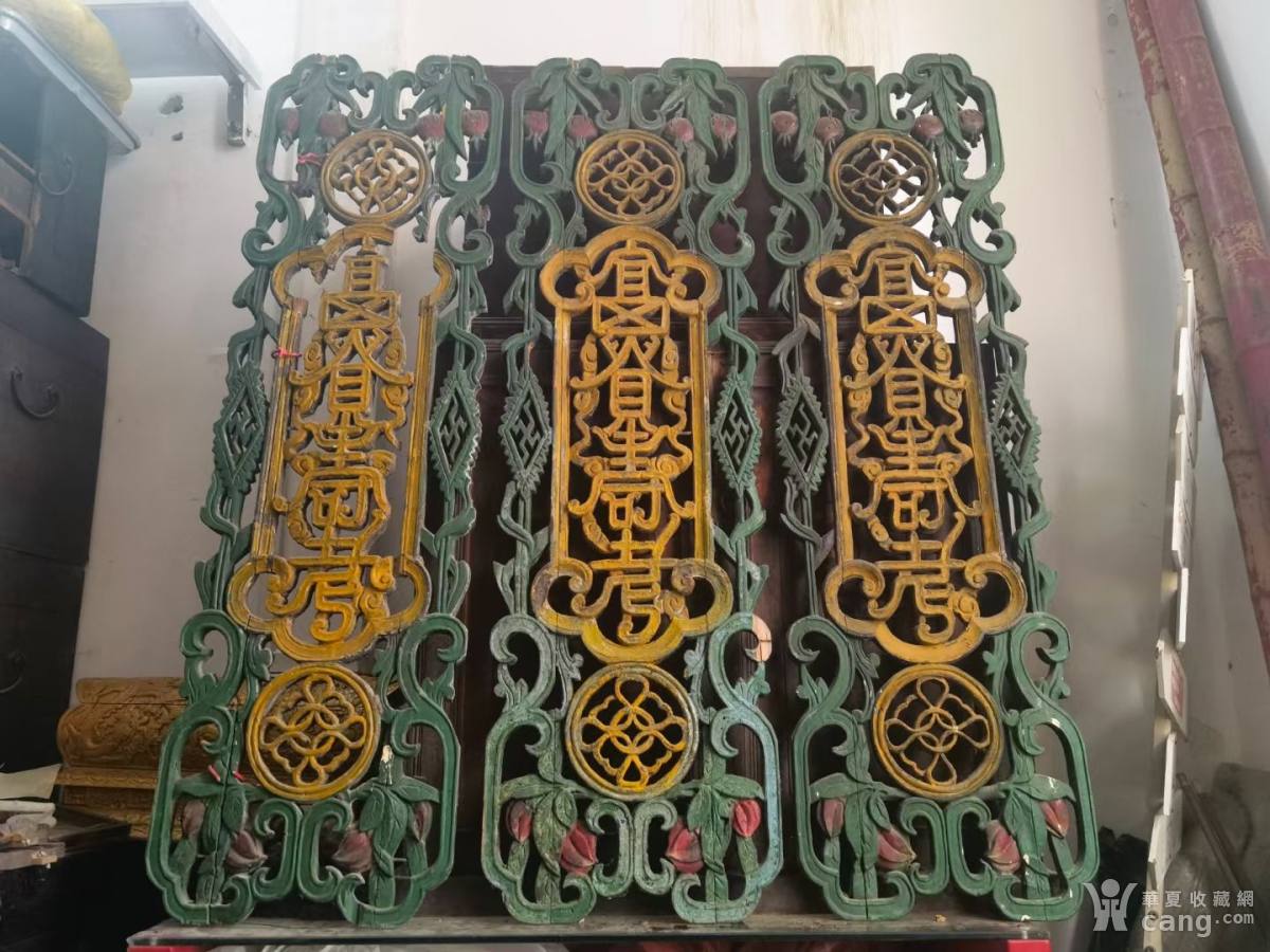 老木雕花窗刻富贵寿考三片,早年后刷了油漆