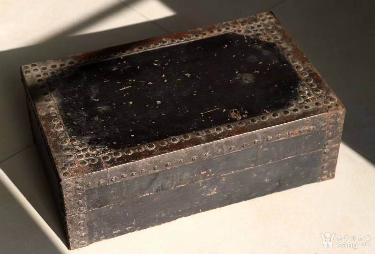 清早期包铁礼箱,四角包铁乳钉,做工精细规矩严谨,皮壳自然品相