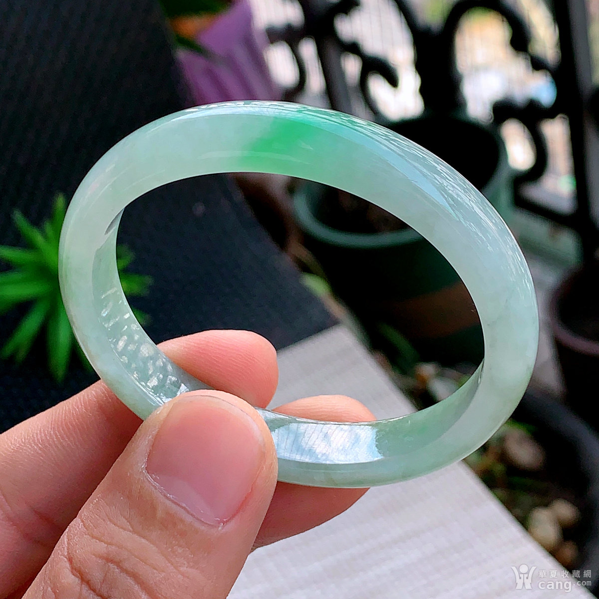缅甸天然翡翠A货冰透水润飘绿贵妃手镯53.8圈口