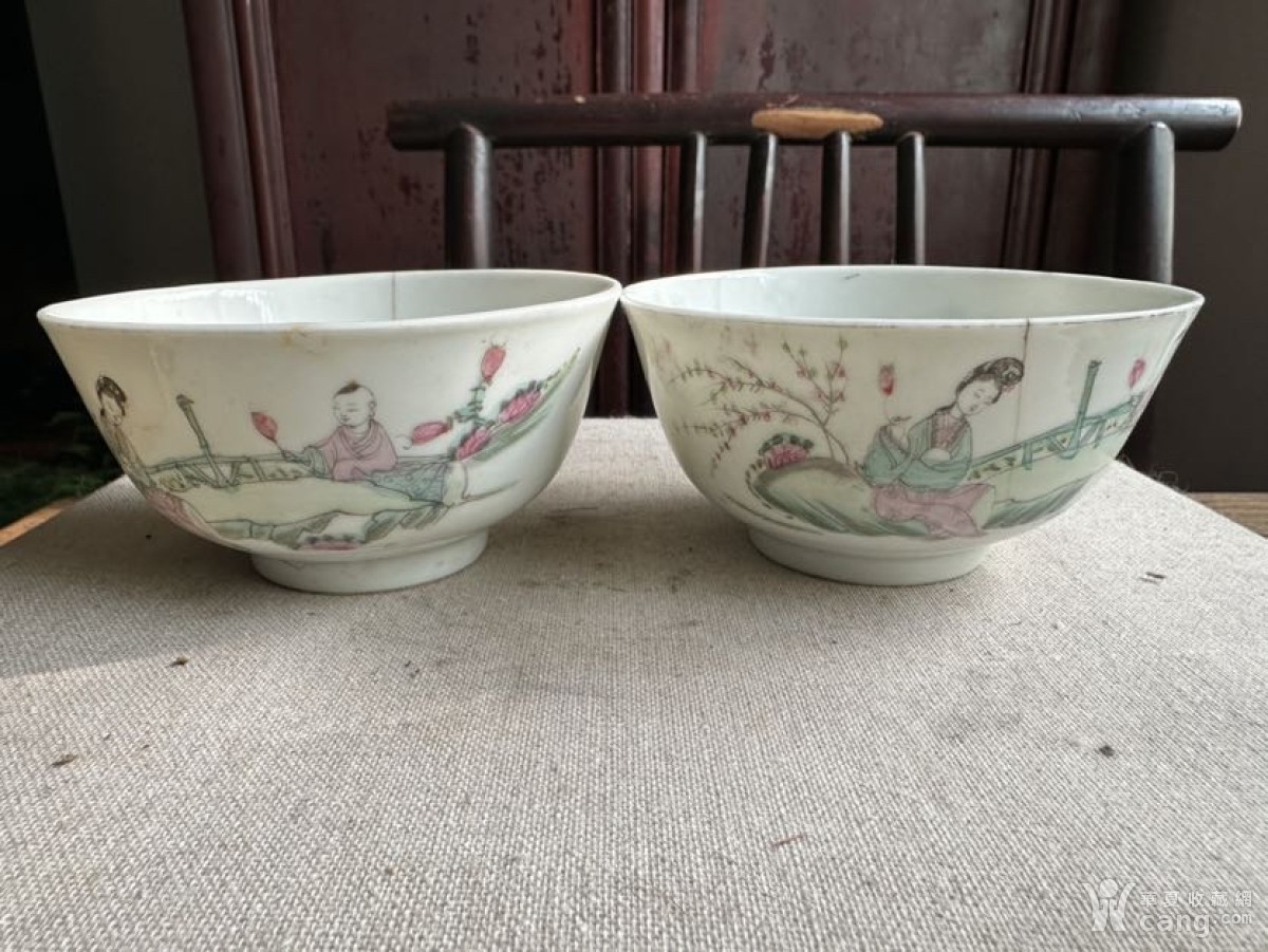 古董古玩收藏杂项清代桃花仕女童子粉菜花卉碗茶盏瓷器民俗收藏