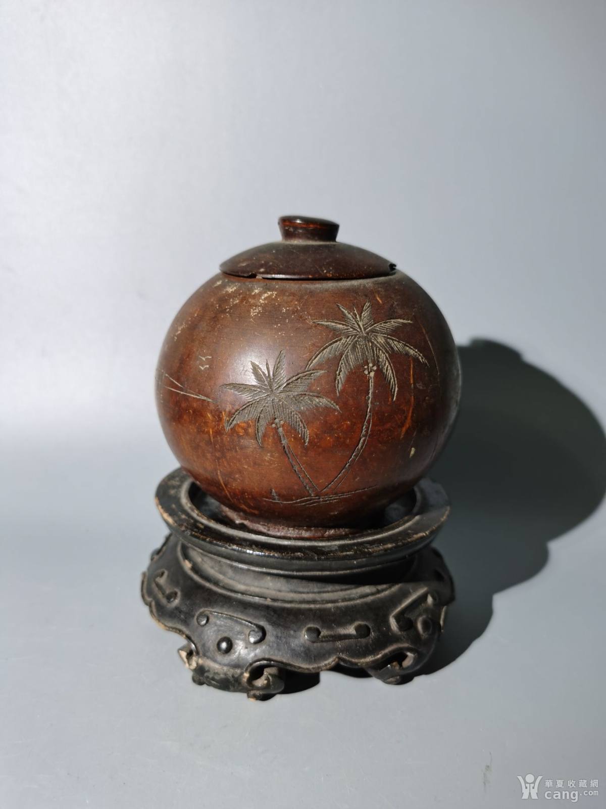 建国初刻椰树纹椰壳茶叶罐