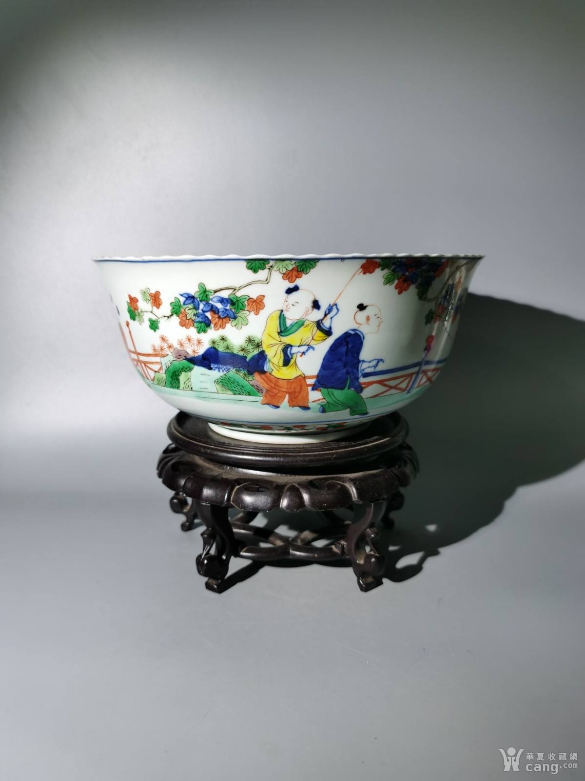 光绪青花五彩三娘教子婴戏大海碗