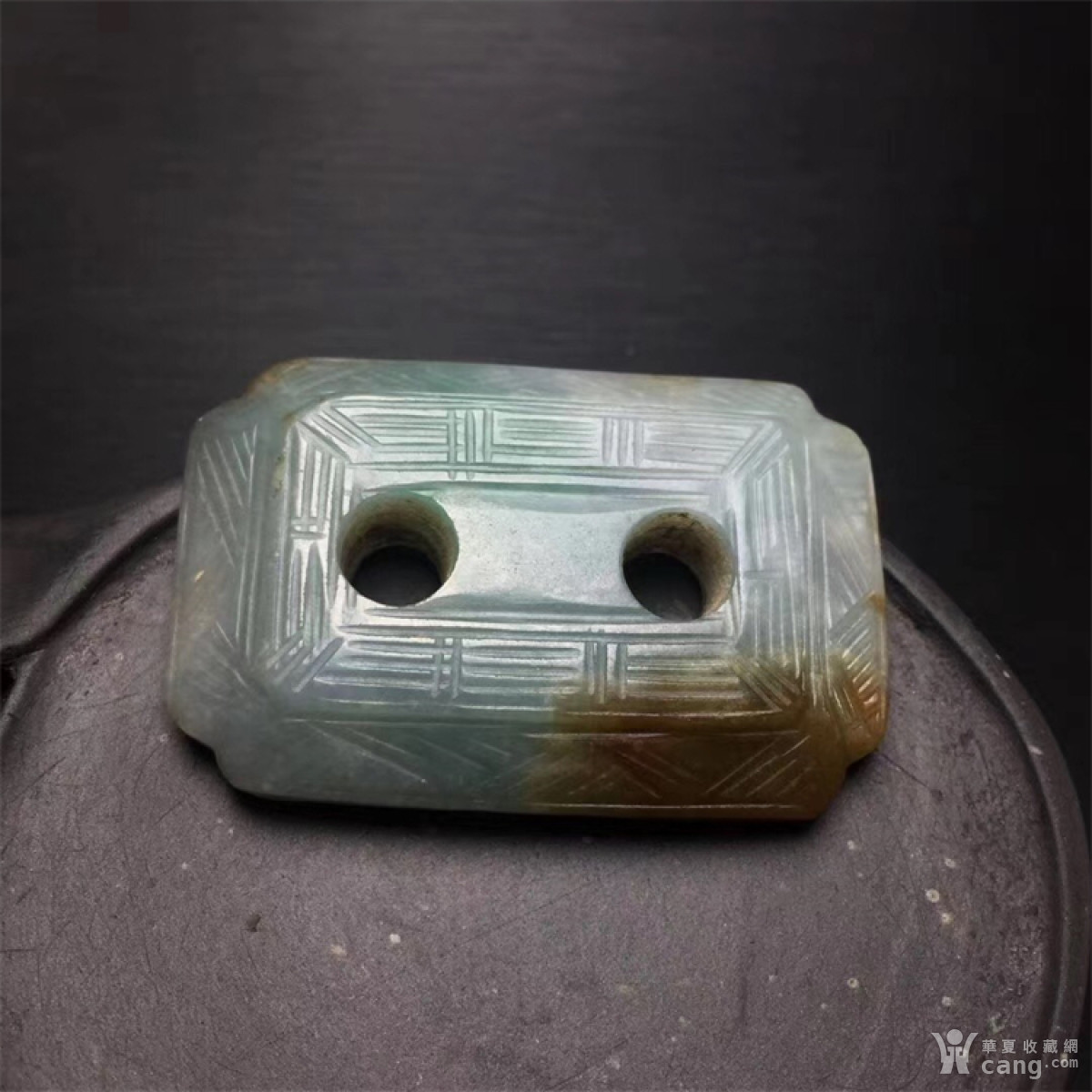 b275清代老坑种红加绿翡翠回纹二饼挂件