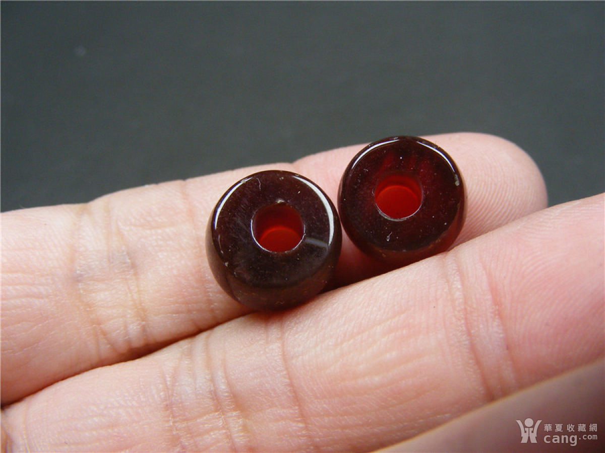 24 西亚几十年的酒红色玛瑙中号扁勒子珠2颗