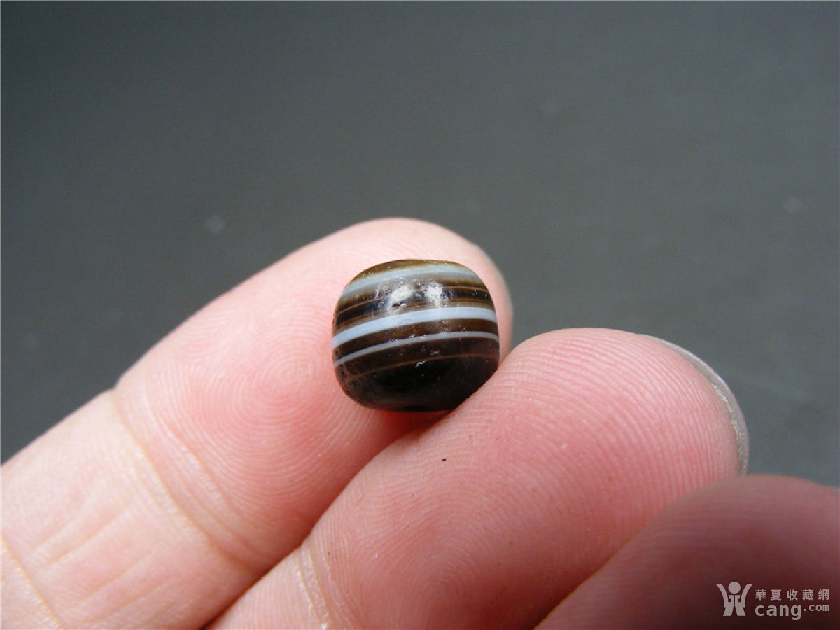 18 西亚上百年的表面满风化纹黑白带细线缠丝玛瑙直筒小珠